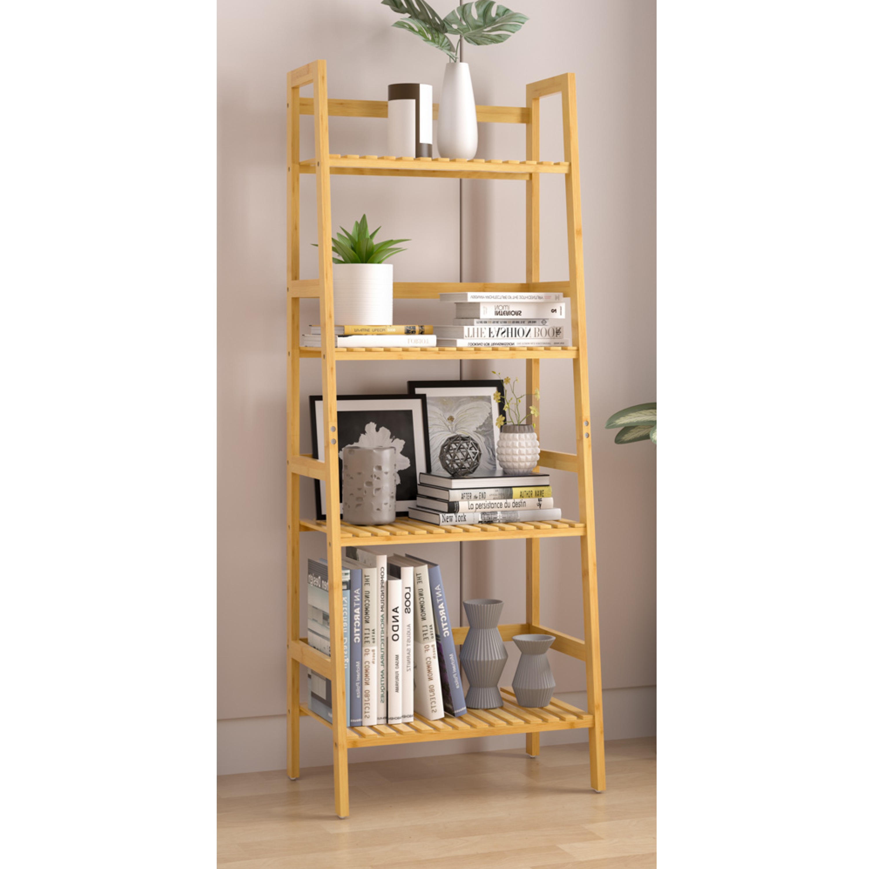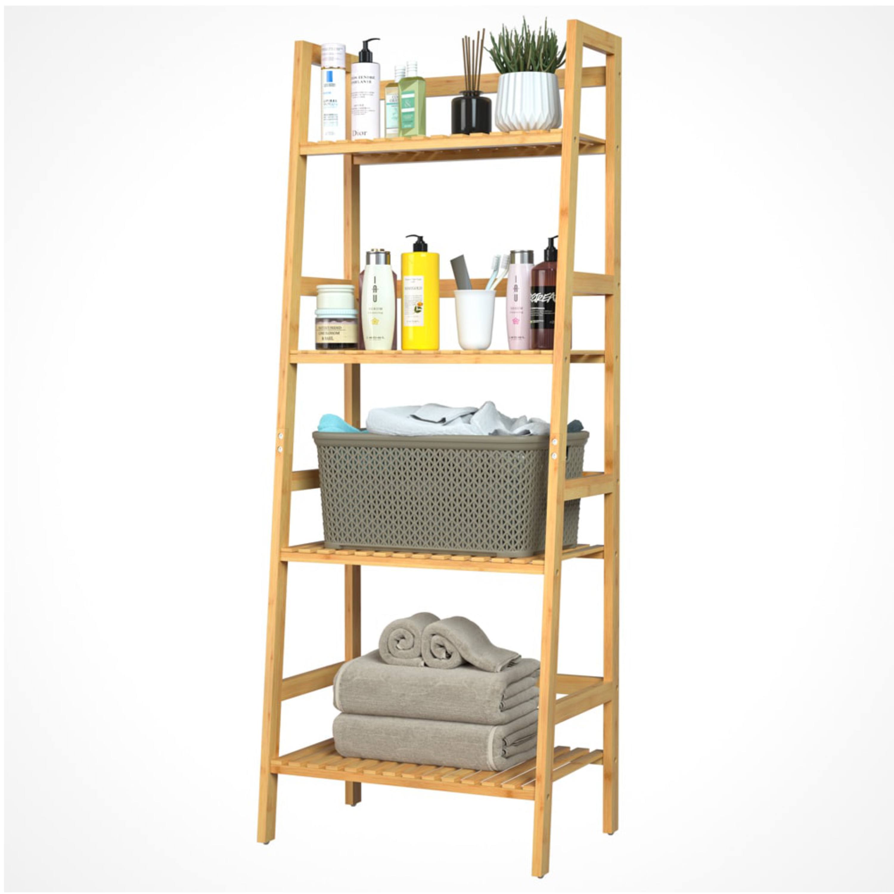 Vybavený je 4 policami, ktoré je možné namontovať do rôznych výšok, takže si vnútorný priestor jednoducho prispôsobíte podľa aktuálnych potrieb. Regál tak umožňuje pohodlné uloženie menších aj väčších predmetov od uterákov a kozmetiky cez topánky až po kuchynské potreby alebo úložné boxy. Konštrukcia je vyrobená z bambusu, ktorý je známy svojou pevnosťou, stabilitou a prirodzenou odolnosťou voči vlhkosti. Regál má maximálnu nosnosť 40 kg, pričom každá polica unesie až 10 kg.