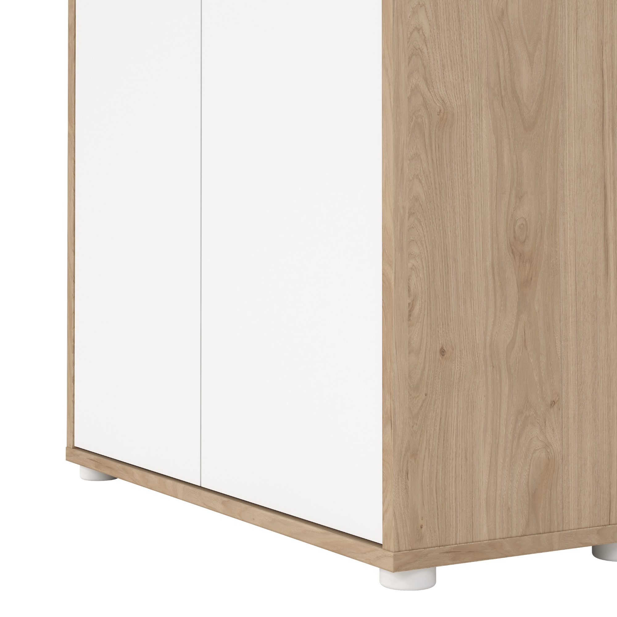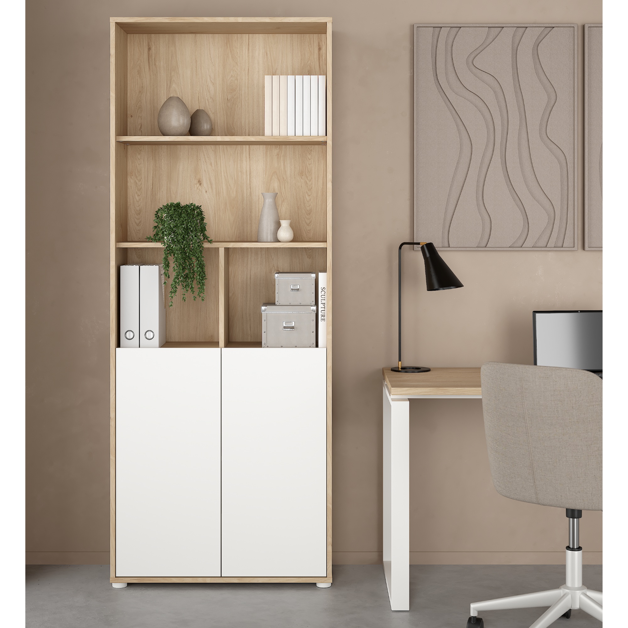 Jeho súčasťou sú štyri vložené police, z ktorých jedna je umiestnená za dvierkami. Regál tak ponúka dostatok otvoreného aj uzatvárateľného priestoru na uloženie kníh, šanónov a rôznych drobností či vystavenie dekorácií.