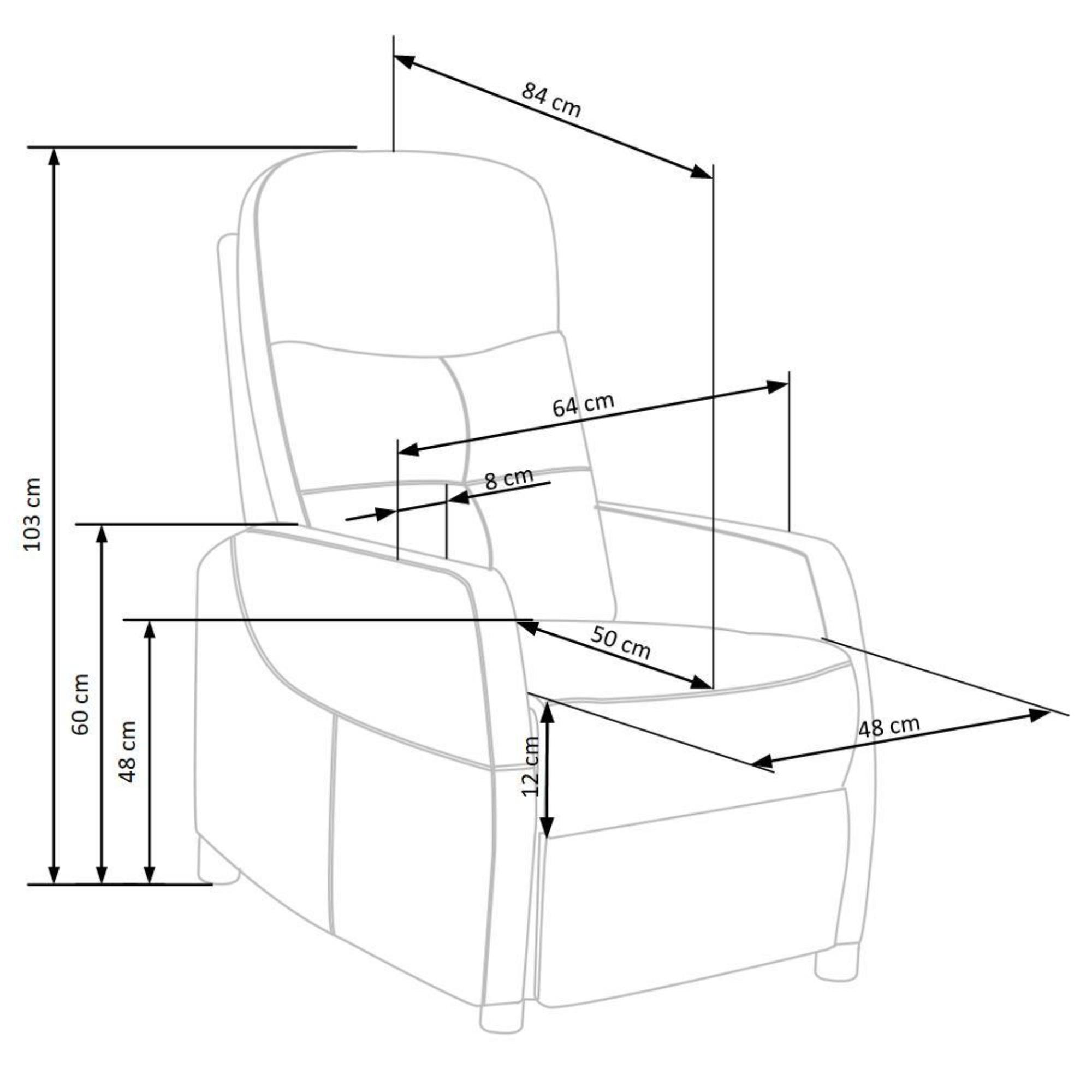 Kreslo je potiahnuté hladkou tkaninou, veľmi príjemnou na dotyk. Hlboký sed, vysoké podrúčky a komfortné, chrbtové operadlo vám umožní dopriať si chvíľku pokoja a oddýchnuť si po náročnom dni. Pomocou jednoduchého mechanizmu kreslo sklopíte do relaxačnej polohy.