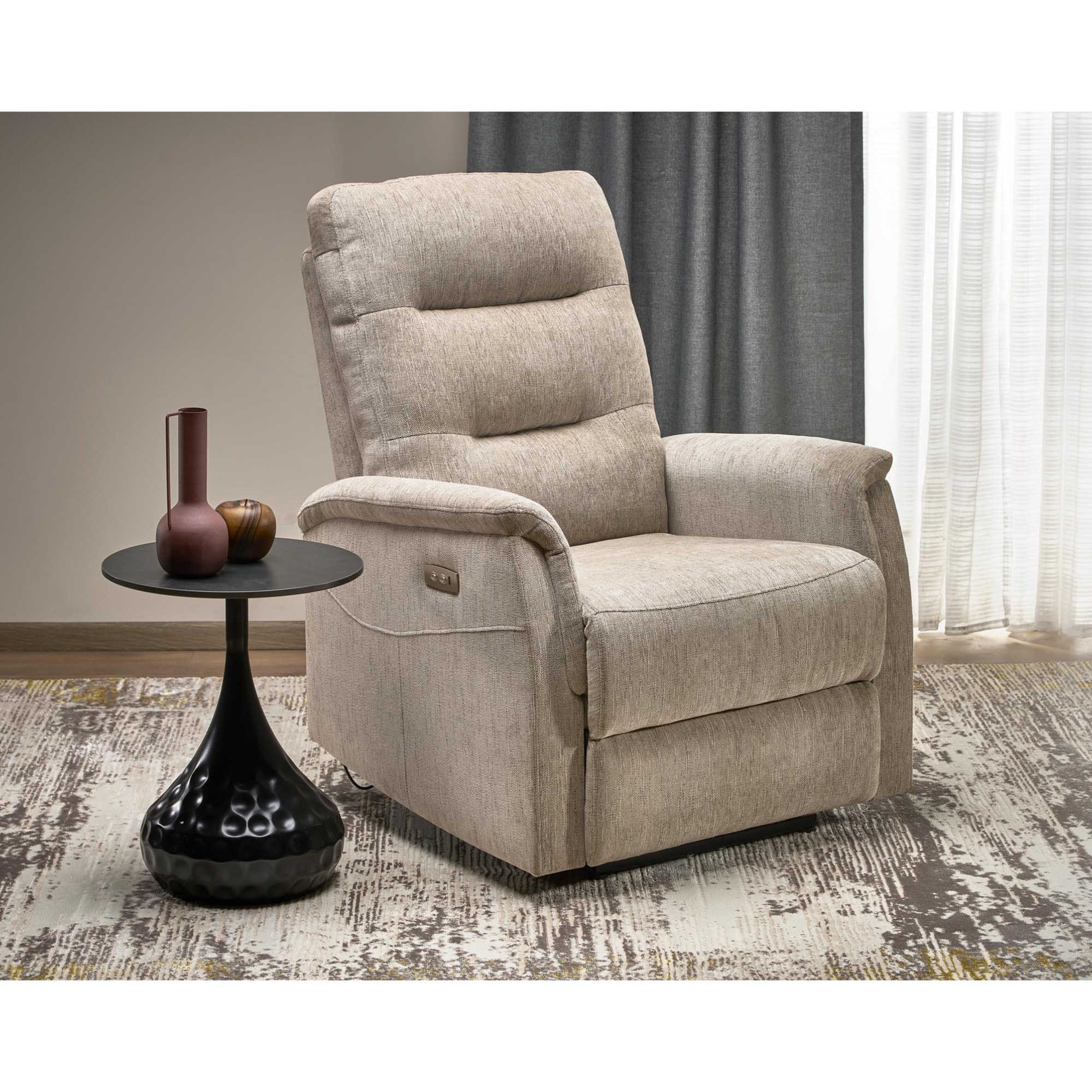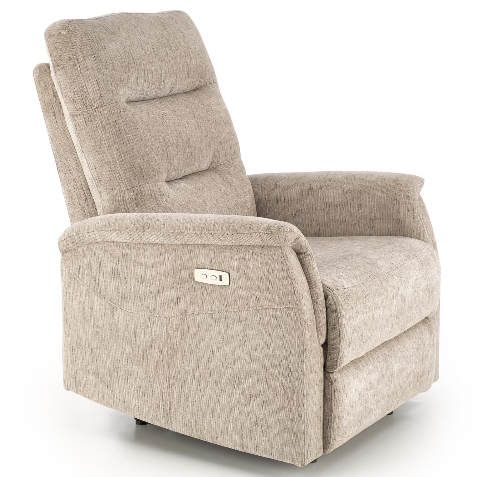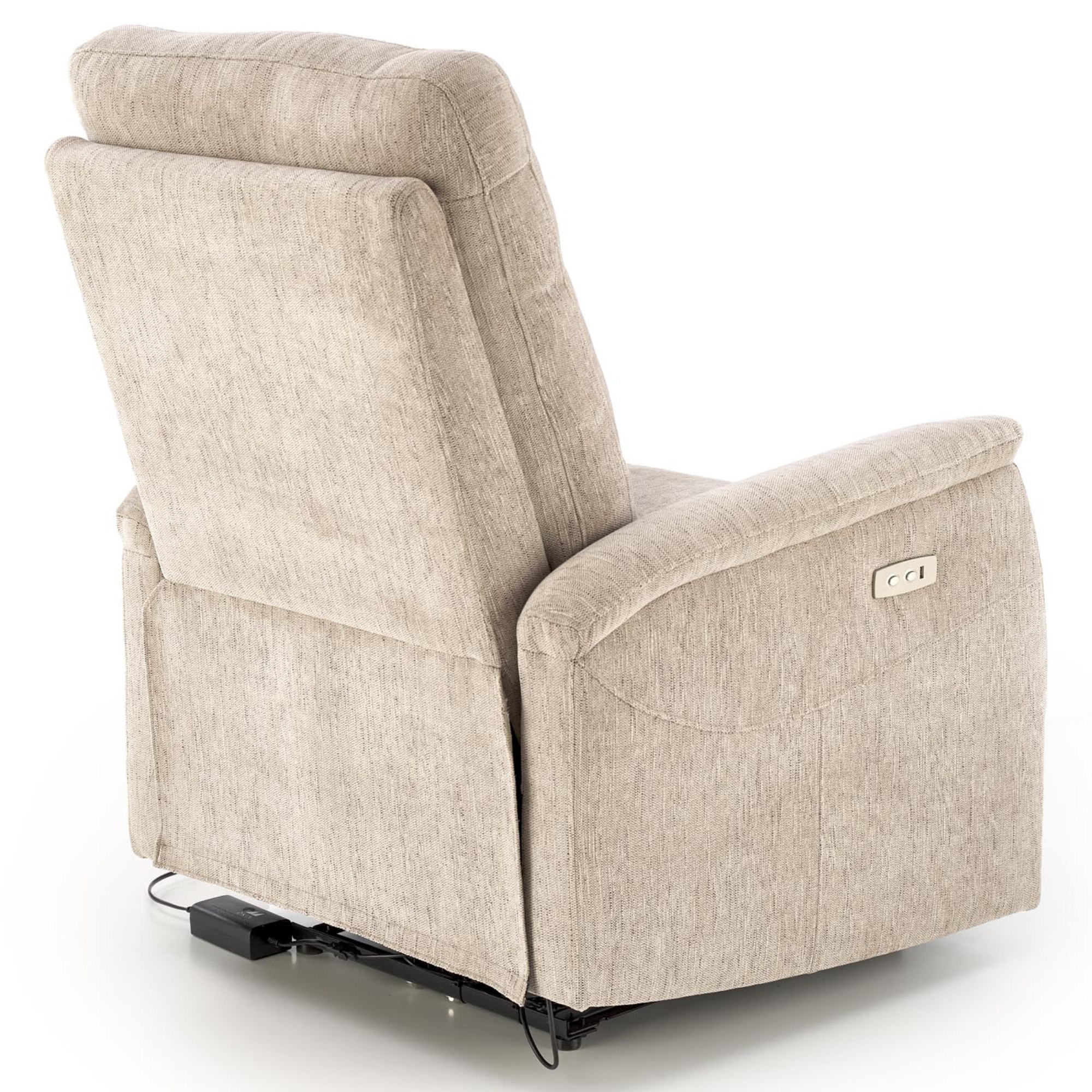 Kreslo je čalúnené elegantnou, na dotyk príjemnou poťahovou tkaninou. Pomocou jednoduchého elektrického ovládania si nastavíte relaxačnú polohu v niekoľkých stupňoch podľa svojich potrieb. Obsahuje aj USB port, kde si môžete nechať nabíjať telefón.