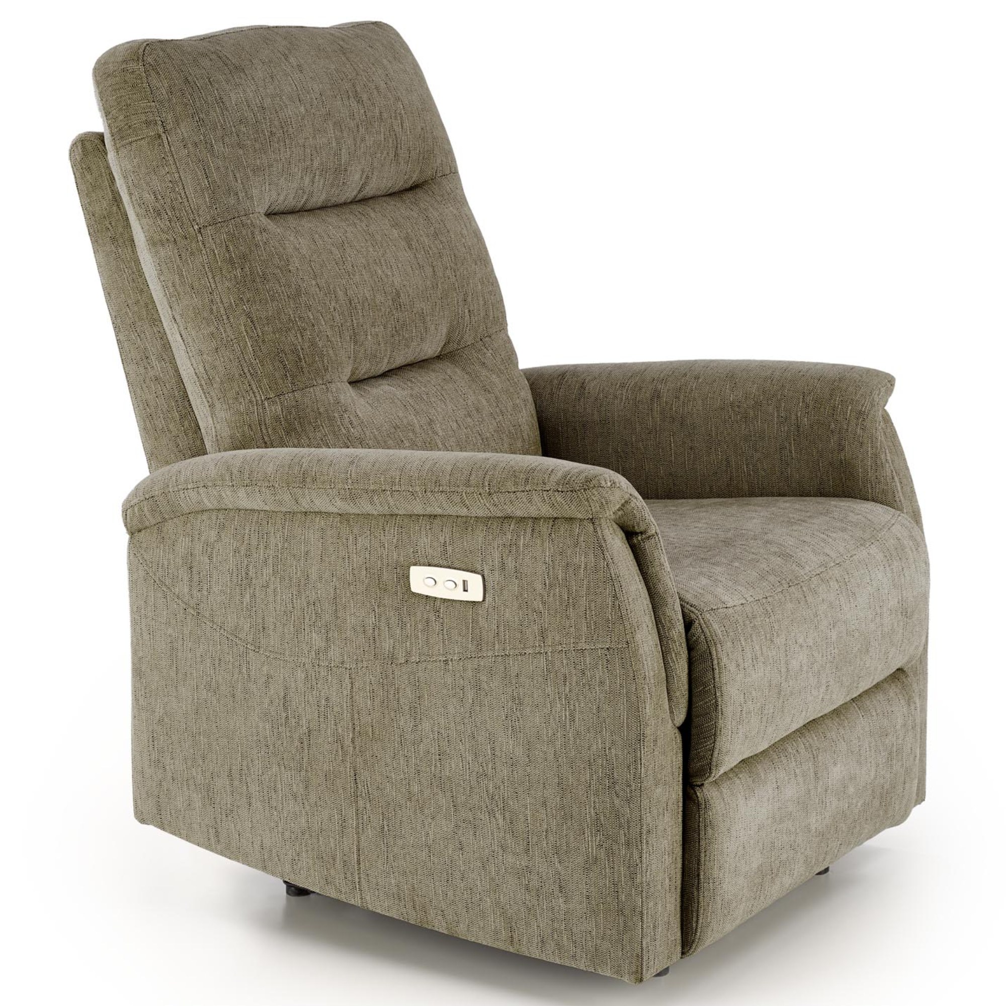 Kreslo je čalúnené elegantnou, na dotyk príjemnou poťahovou tkaninou. Pomocou jednoduchého elektrického ovládania si nastavíte relaxačnú polohu v niekoľkých stupňoch podľa svojich potrieb. Obsahuje aj USB port, kde si môžete nechať nabíjať telefón.