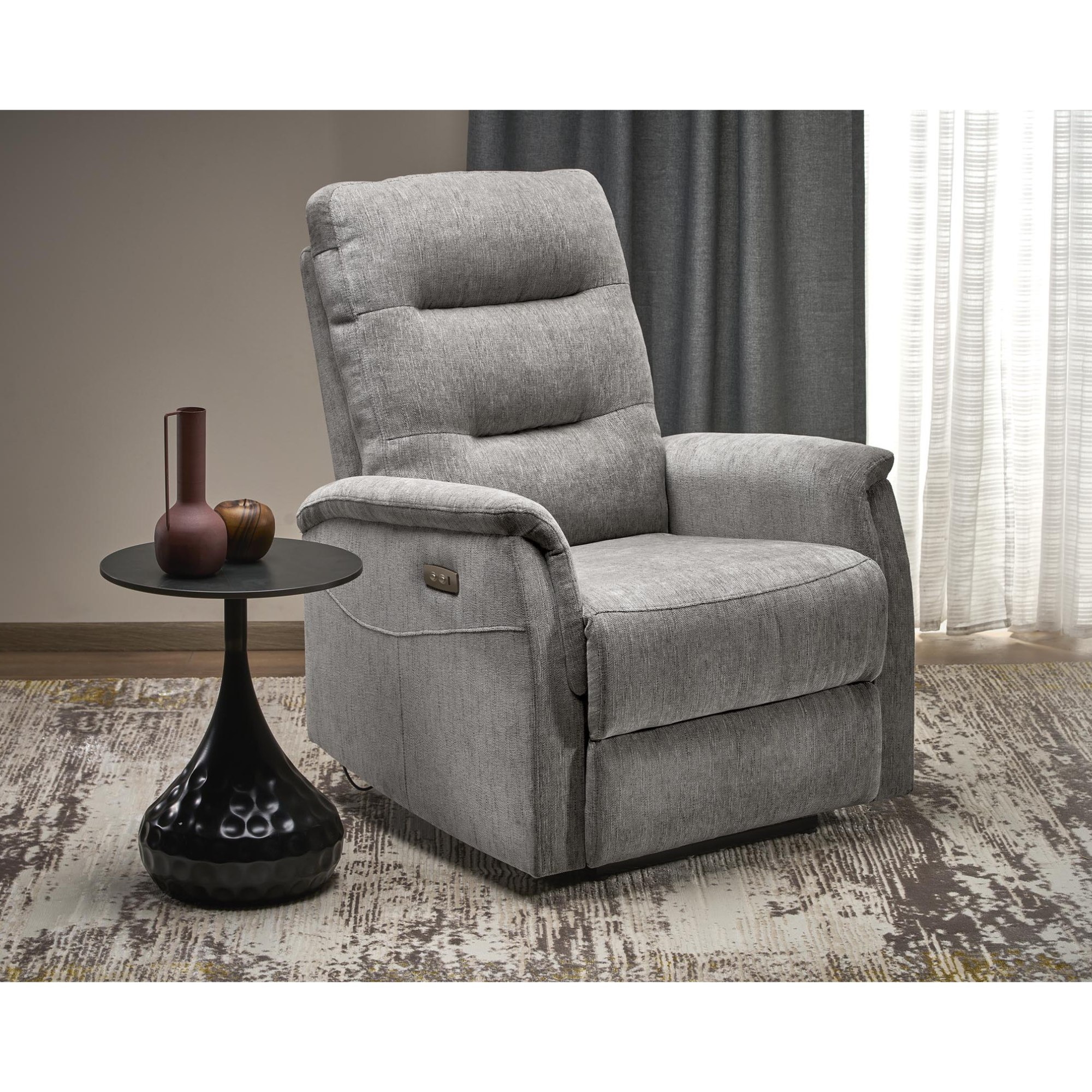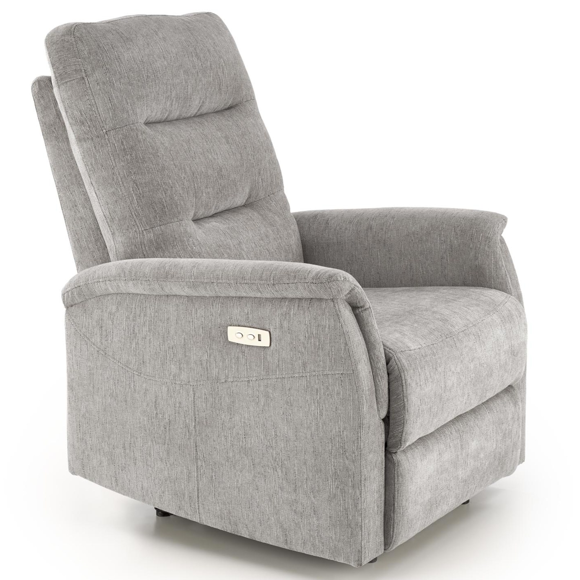 Kreslo je čalúnené elegantnou, na dotyk príjemnou poťahovou tkaninou. Pomocou jednoduchého elektrického ovládania si nastavíte relaxačnú polohu v niekoľkých stupňoch podľa svojich potrieb. Obsahuje aj USB port, kde si môžete nechať nabíjať telefón.