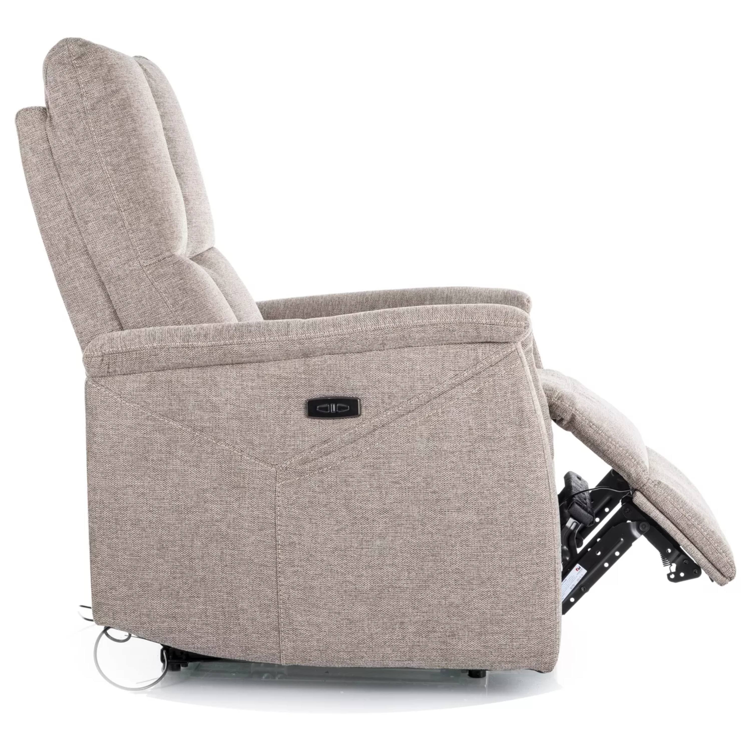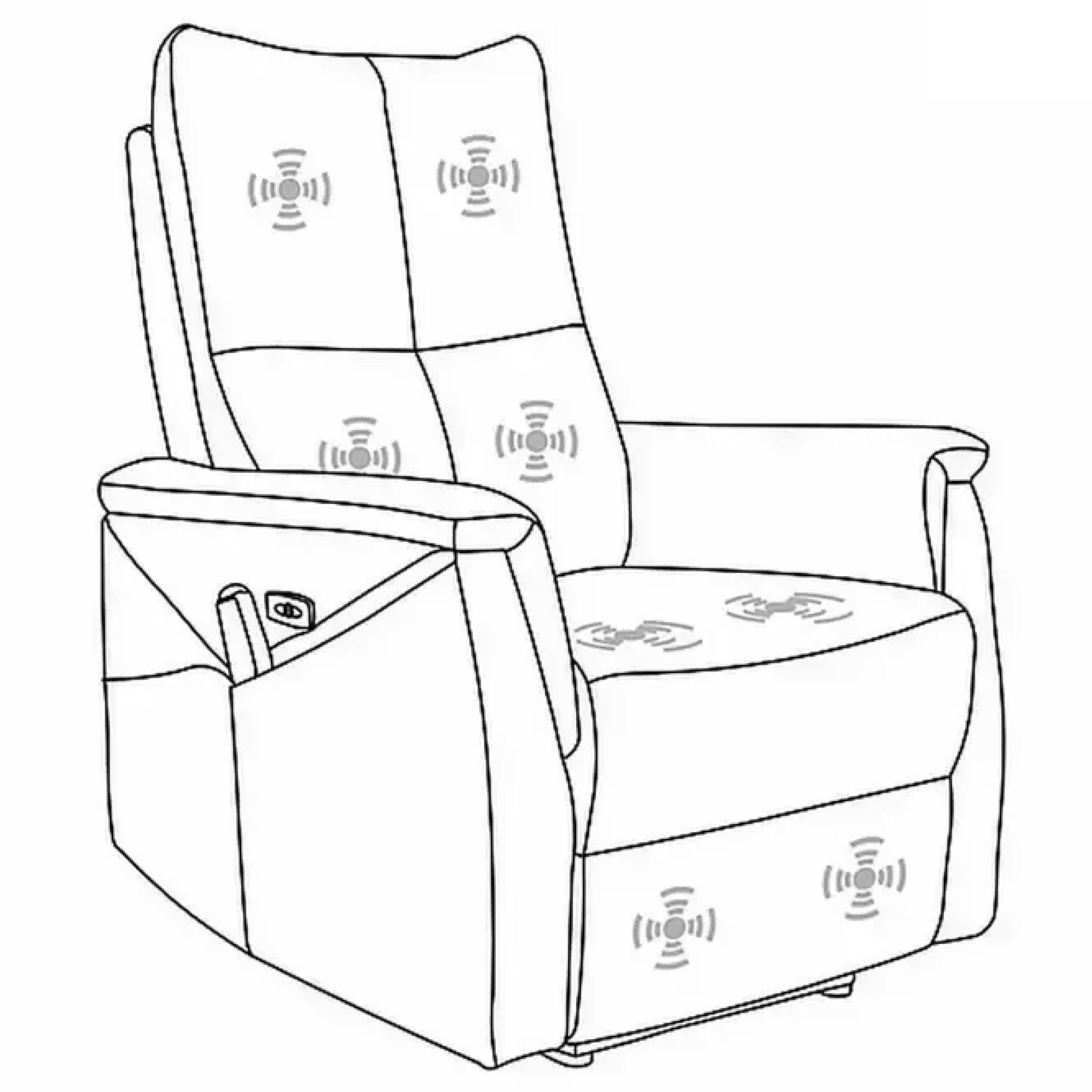 Jednoduchým diaľkovým ovládaním si zvolíte, či chcete využiť masážnu funkciu. Chrbtová opierka je široká a pohodlná a dobre sa prispôsobí chrbtu používateľa. Elegantné čalúnenie z hladkej tkaniny vytvára jedinečný vzhľad kresla. K ďalším sofistikovaným detailom, ktoré robia z kresla moderné zázemie na relaxáciu, patrí USB port, ktorý je zároveň nabíjačkou telefónu.