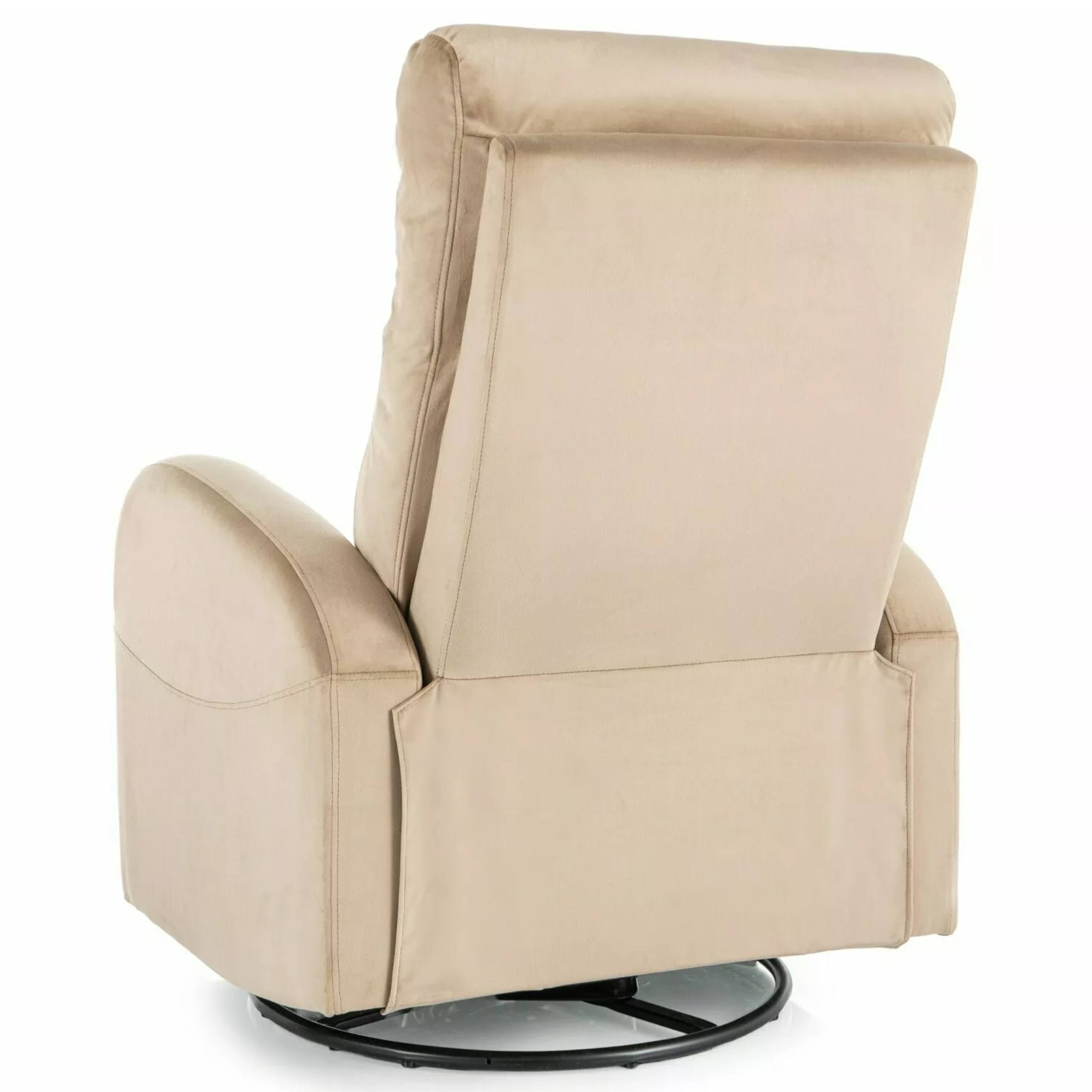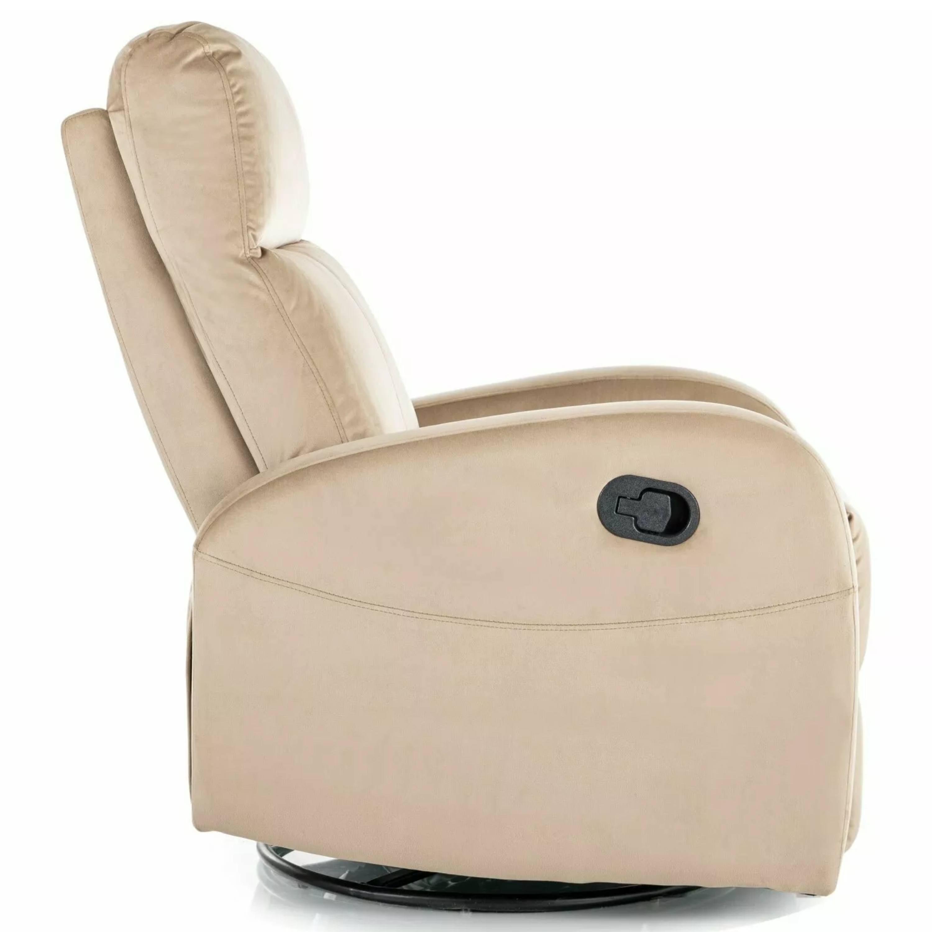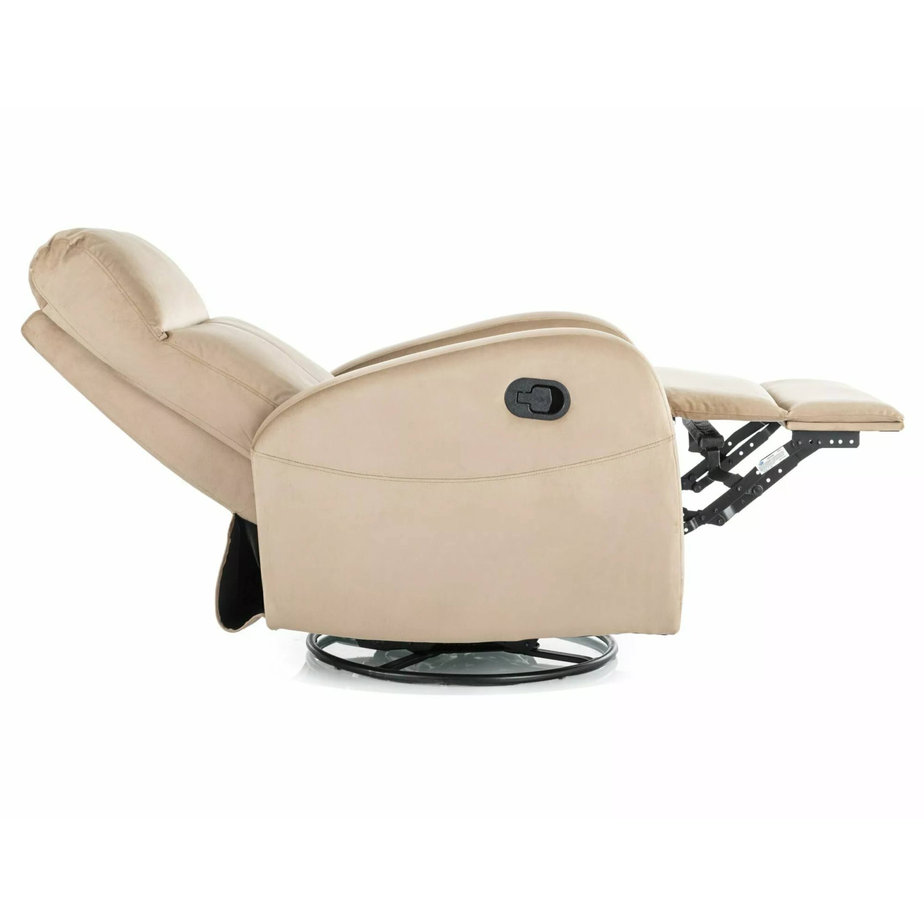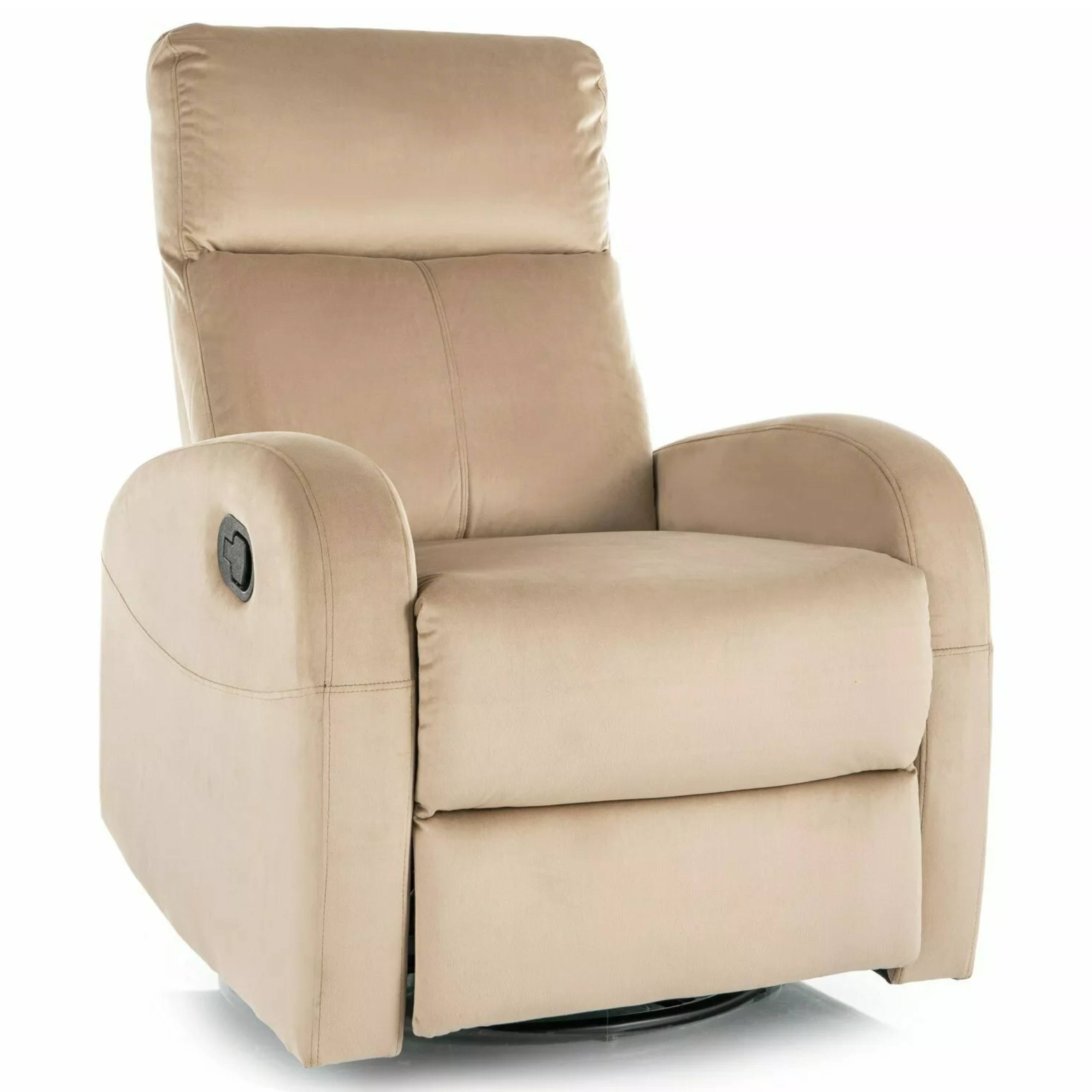 Kreslo je potiahnuté hladkou tkaninou, ktorá je veľmi príjemná na dotyk. Hlboké sedenie, vysoké podrúčky a komfortné operadlo vám umožnia dopriať si chvíľku pokoja a oddýchnuť si po náročnom dni. Pomocou jednoduchého mechanizmu kreslo sklopíte do relaxačnej polohy. Navyše je vybavené otočným mechanizmom o 360°, ktorý je možné používať výhradne v sede.