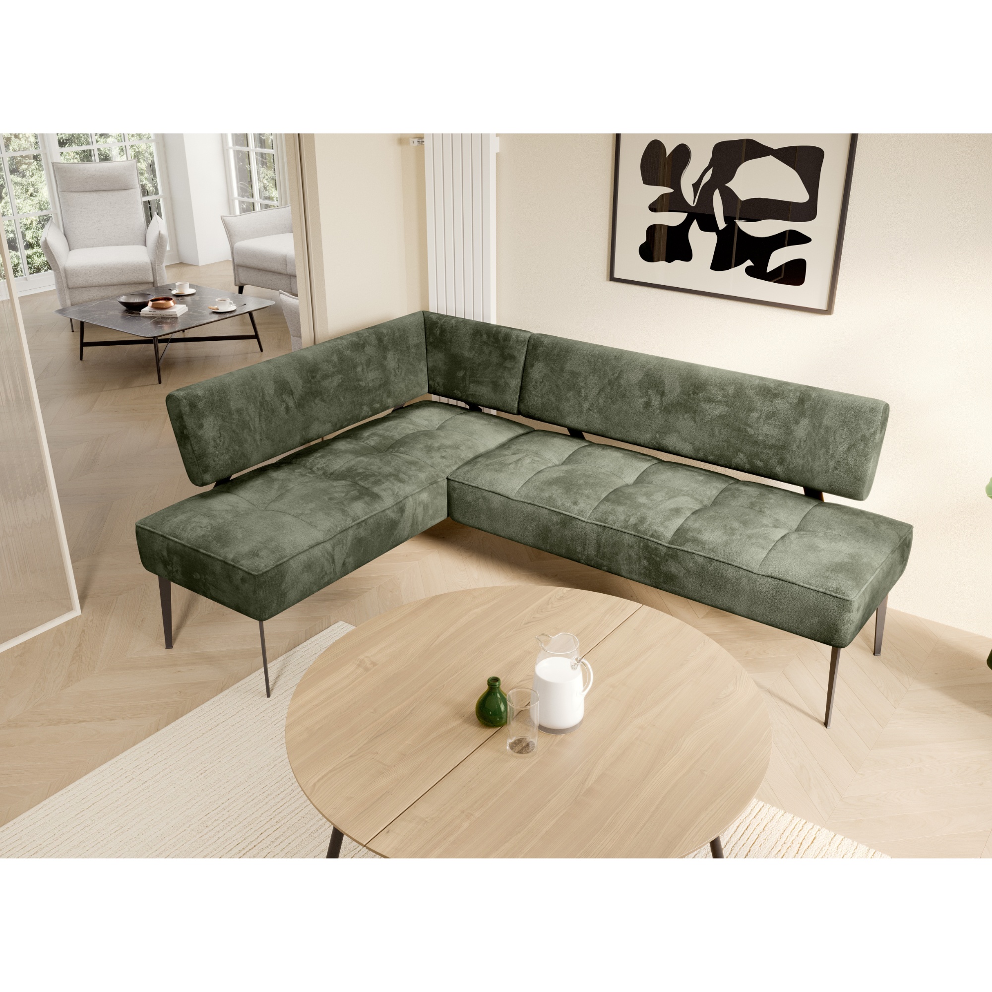 Rohová jedálenská lavica BANKO L - olivová, ľavá