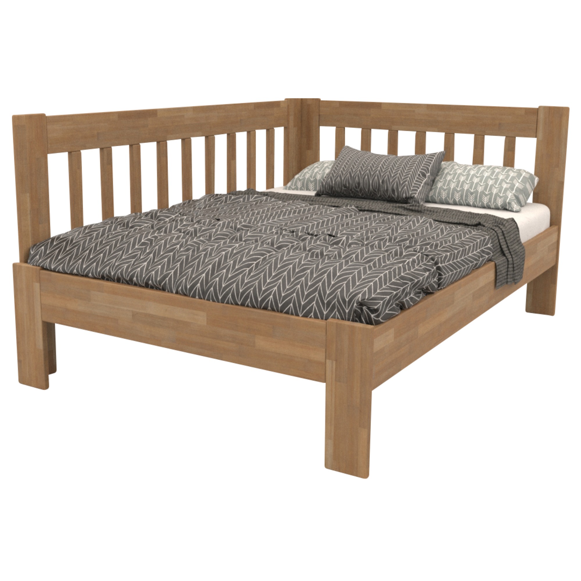 Rohové vyhotovenie umožňuje posteľ umiestniť kamkoľvek, podľa dispozícií vášho interiéru. Čelá postele majú praktické využitie, ak umiestnite posteľ do detskej izby, deti si latky môžu obložiť hračkami, alebo na ne zavesiť menšiu lampičku. Dospelí naopak ocenia vystlanie bočníc vankúšmi pre pohodlné opieranie počas čítania ich obľúbenej knihy. Matrac a rošt si môžete vybrať z našej širokej ponuky, aby bola vaša posteľ kompletná.