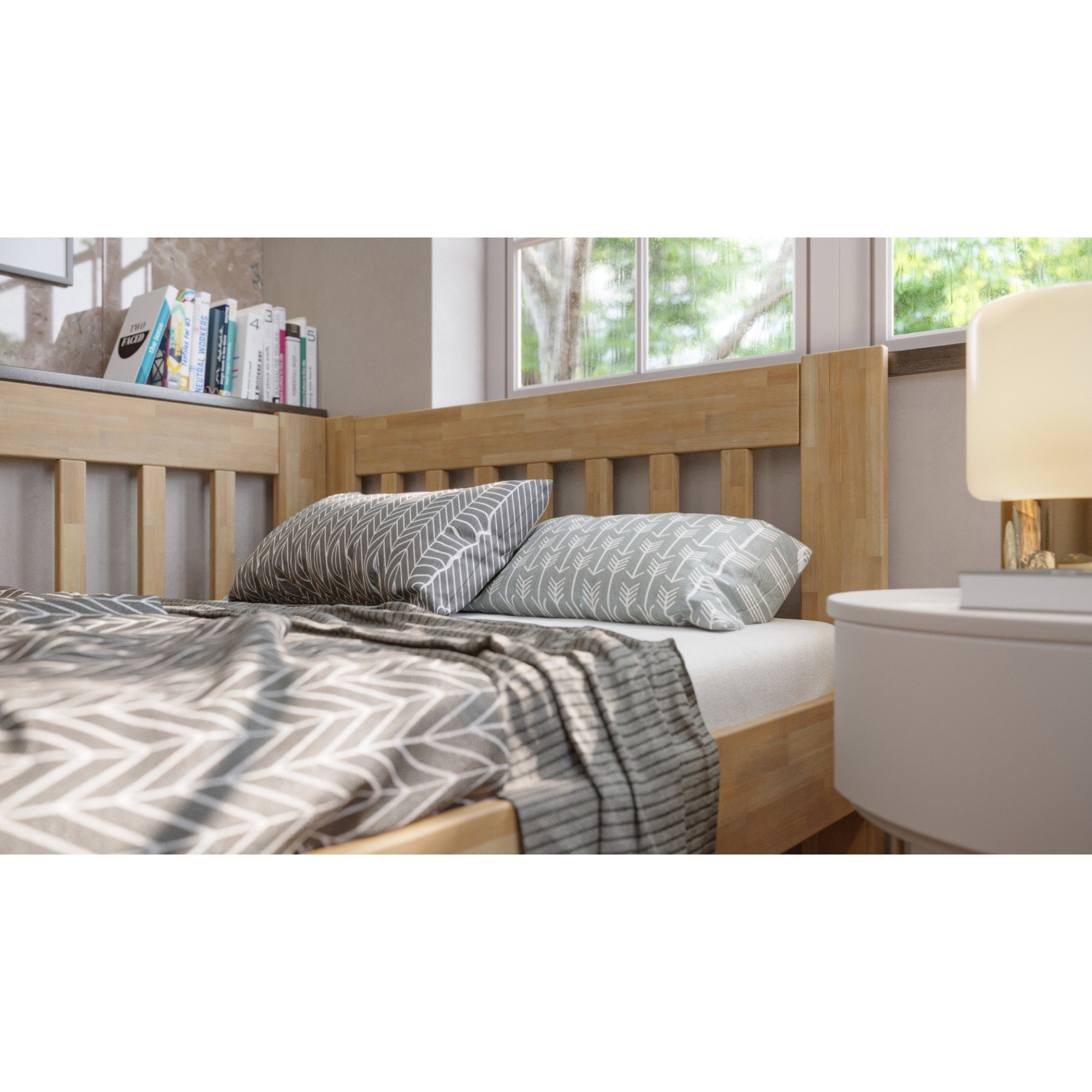 Posteľ je z masívneho dreva, ktoré má vysokú nosnosť, odolnosť a je nenáročné na údržbu. Povrchová olejová úprava drevo napúšťa a takto ošetrená posteľ poskytuje odolnosť proti oteru. Dôvod, prečo je táto úprava obľúbená spočíva v skutočnosti, že škrabance nie sú viditeľné a hlbšie stopy sa dajú odstrániť čistením a miestnou opravou. Hrúbka materiálu, z ktorého je posteľ vyrobená je 27 mm
