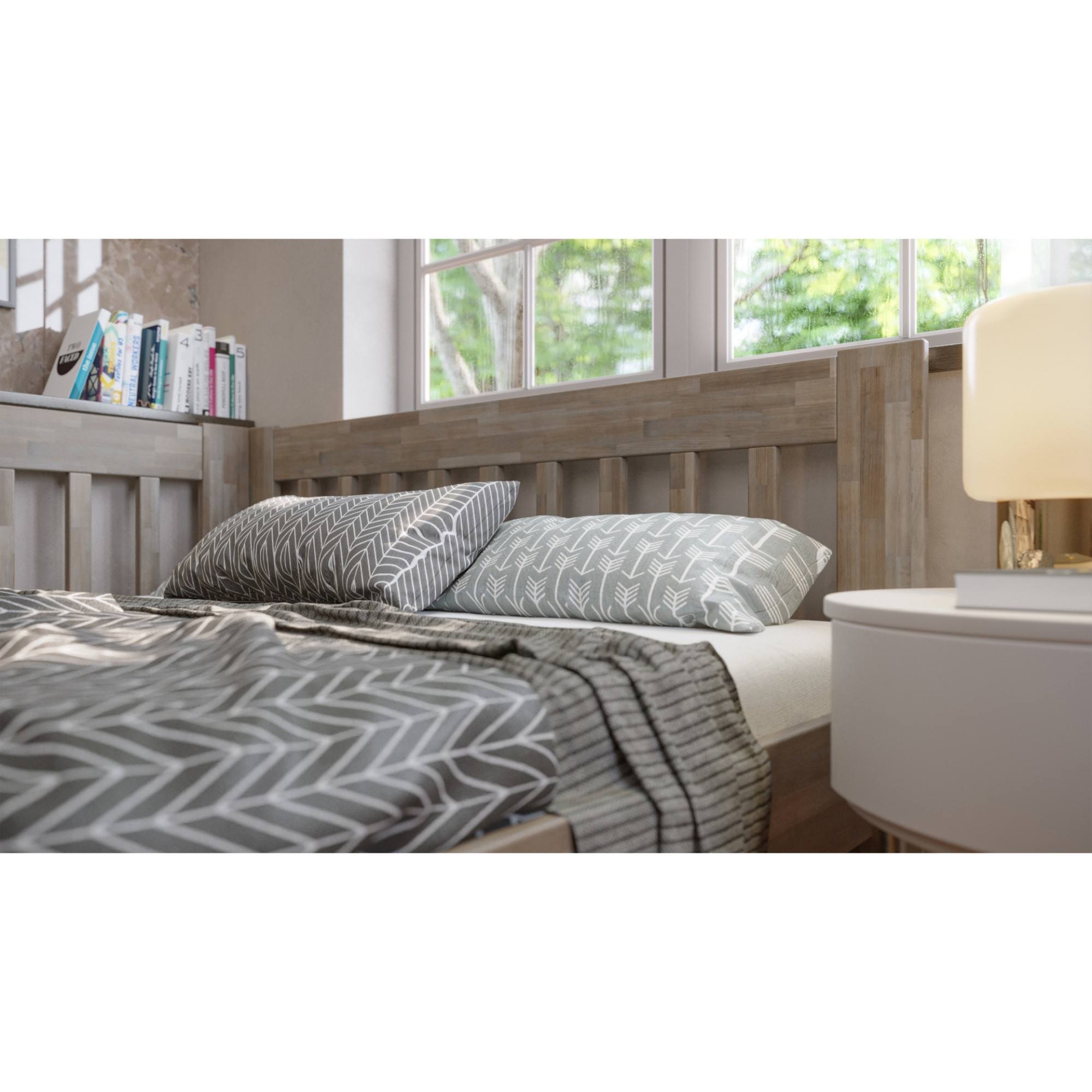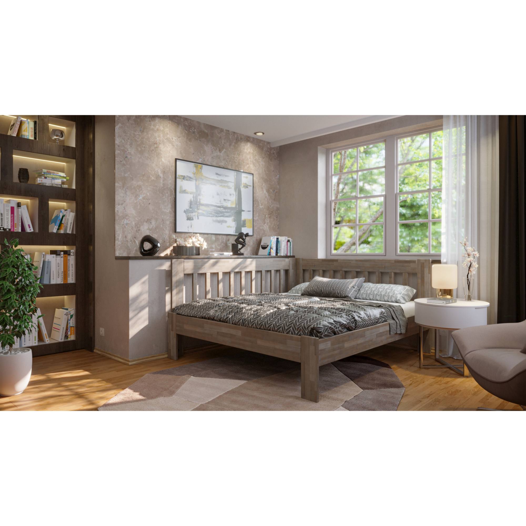 - Doplňujúca poznámka: Posteľ z bukového masívneho dreva je morená do sivého odtieňa. Nosnosť 130 kg pre jednu ložnú plochu