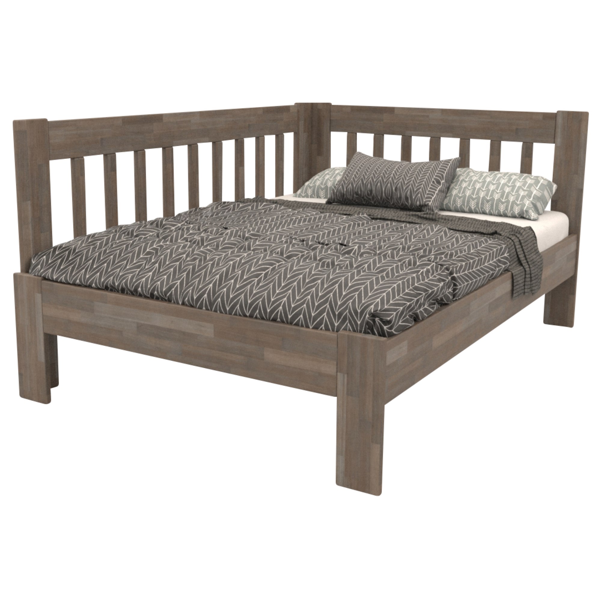 Rohové vyhotovenie umožňuje posteľ umiestniť kamkoľvek, podľa dispozícií vášho interiéru. Čelá postele majú praktické využitie, ak umiestnite posteľ do detskej izby, deti si latky môžu obložiť hračkami, alebo na ne zavesiť menšiu lampičku. Dospelí naopak ocenia vystlanie bočníc vankúšmi pre pohodlné opieranie počas čítania ich obľúbenej knihy. Matrac a rošt si môžete vybrať z našej širokej ponuky, aby bola vaša posteľ kompletná.