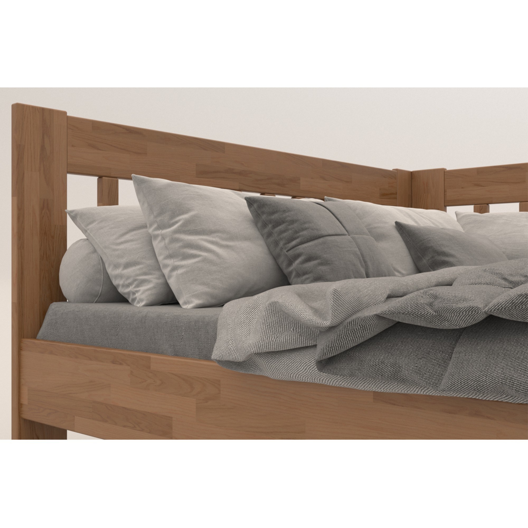 - Doplňujúca poznámka: Posteľ z dubového masívneho dreva je morená do odtieňa svetlý orech. Nosnosť 130 kg pre jednu ložnú plochu.