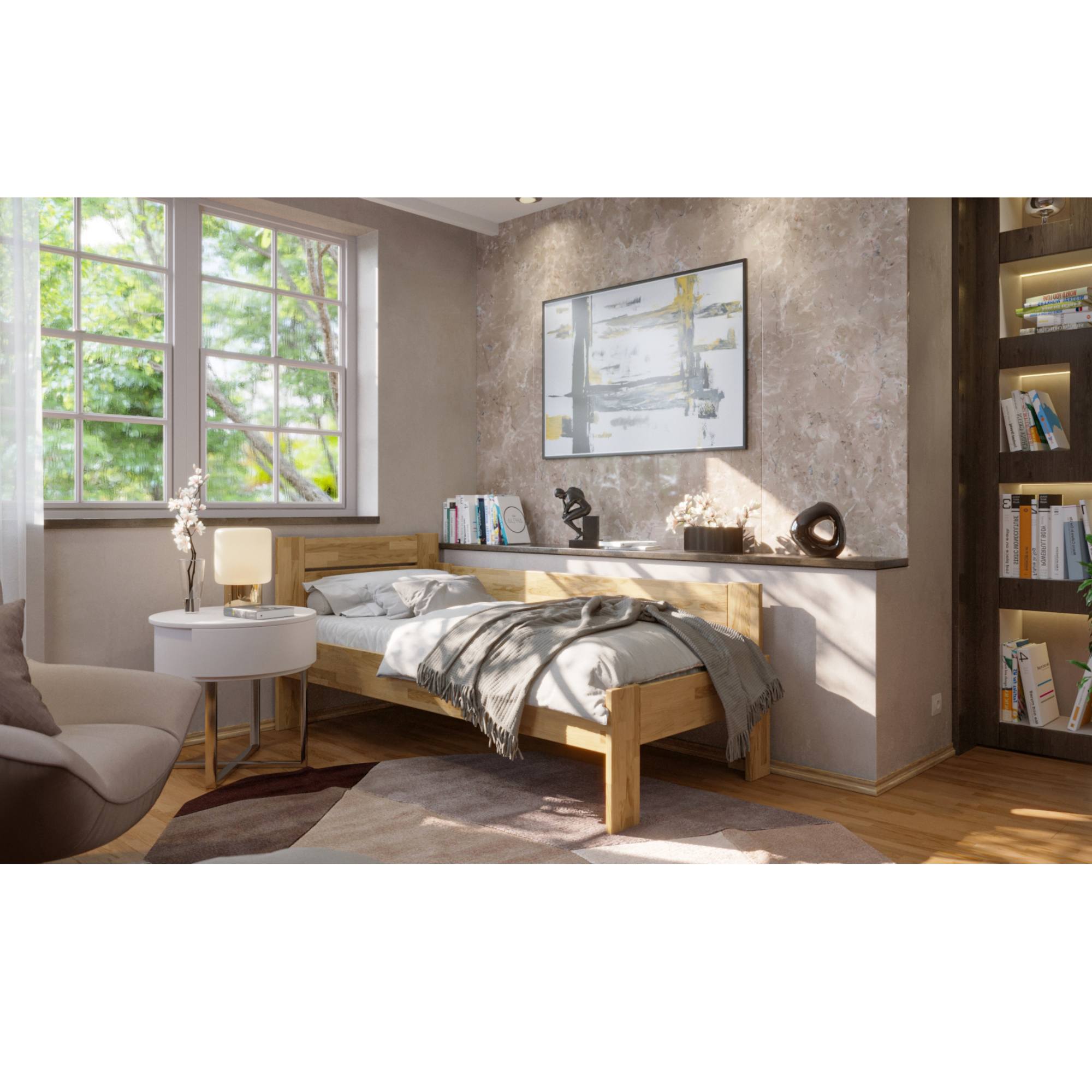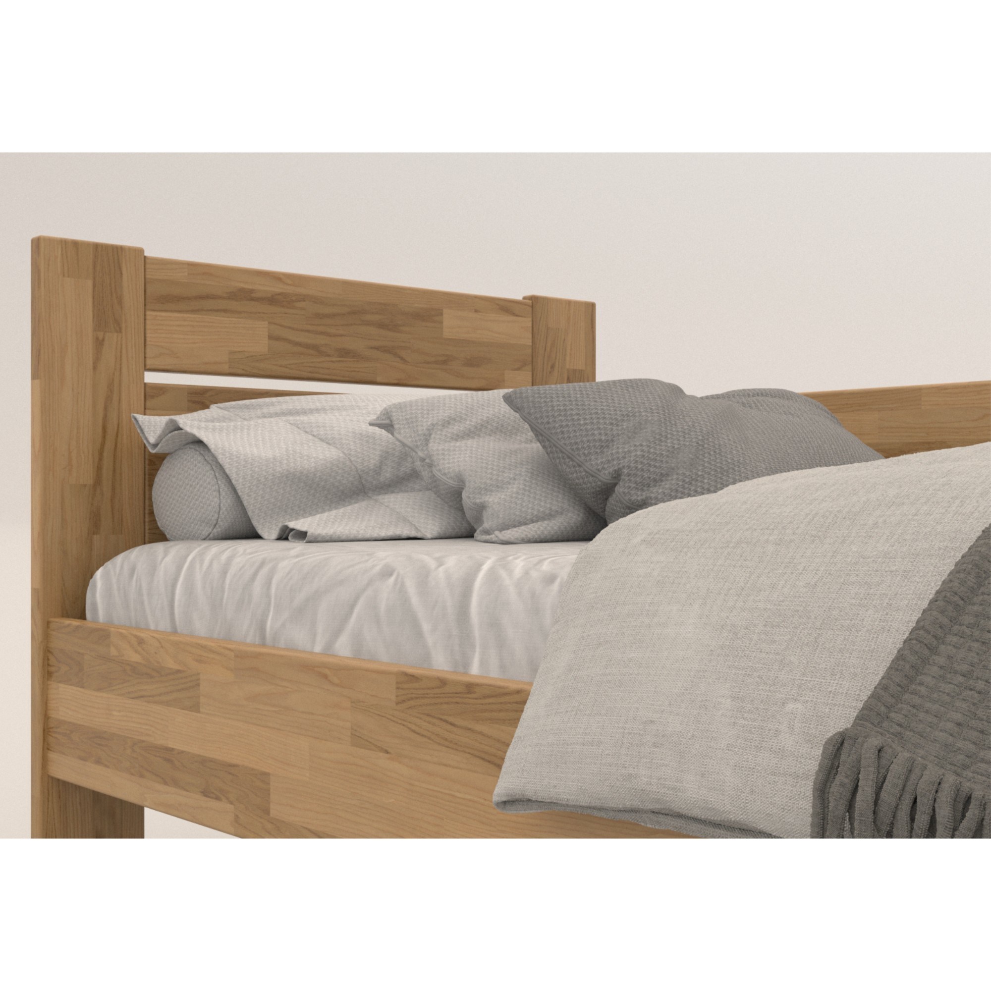 Konštrukcia je vyrobená z masívneho dreva, ktoré je pevné, odolné a má dlhú životnosť. Povrchová olejovaná úprava drevo napúšťa a zvyšuje odolnosť proti oteru. Praktické rohové vyhotovenie vám umožňuje posteľ umiestniť kamkoľvek, podľa dispozícií danej miestnosti. Čelo aj vysoká bočnica postele v kombinácii s vankúšmi sú ideálne na pohodlné opretie počas odpočinku. Celú konštrukciu podopierajú pevné nohy zaisťujúce celkovú stabilitu a umožňujúce ľahké upratovanie pod posteľou. Dodávaná je bez matraca a roštu, ale veríme, že si tie ideálne vyberiete z nášho širokého sortimentu.
