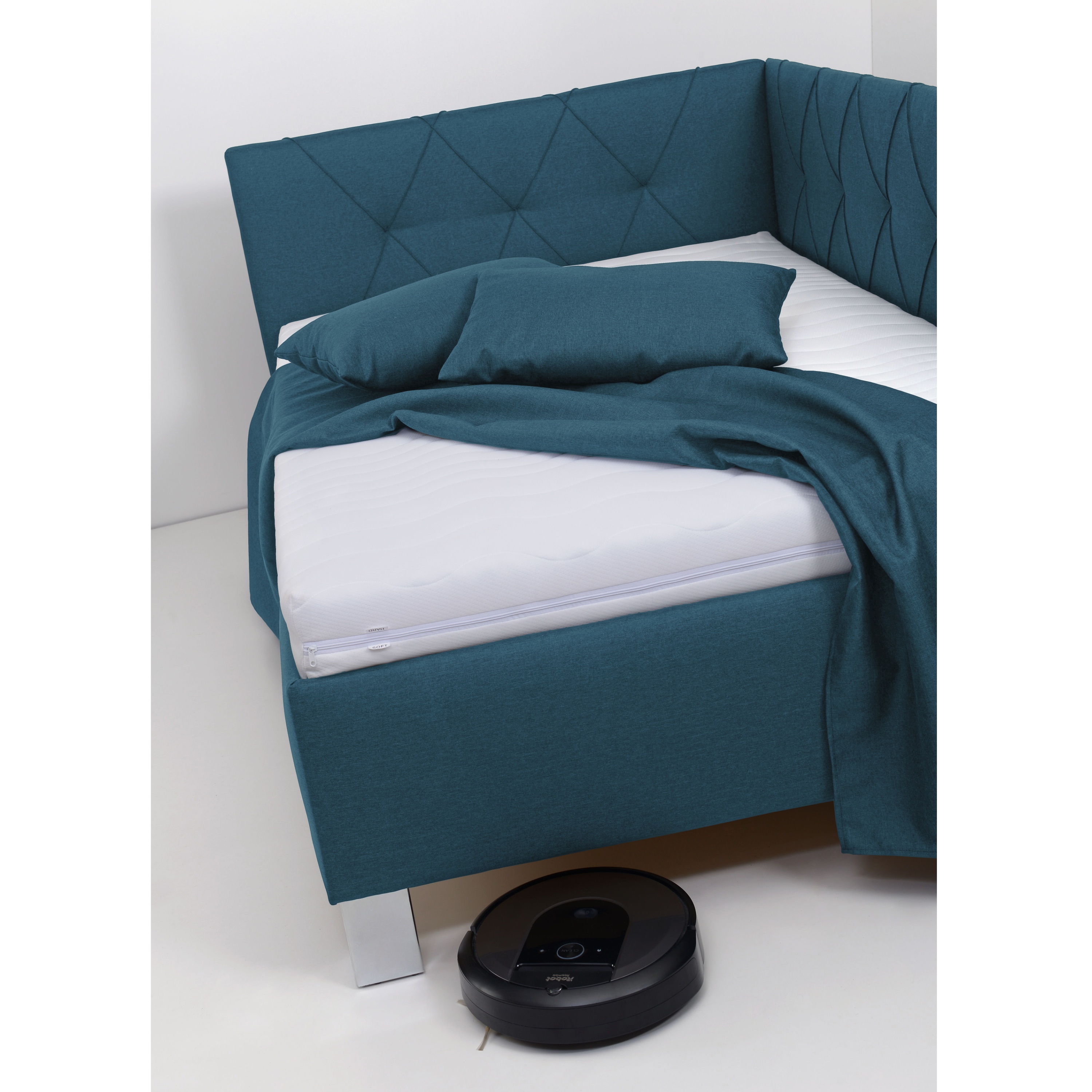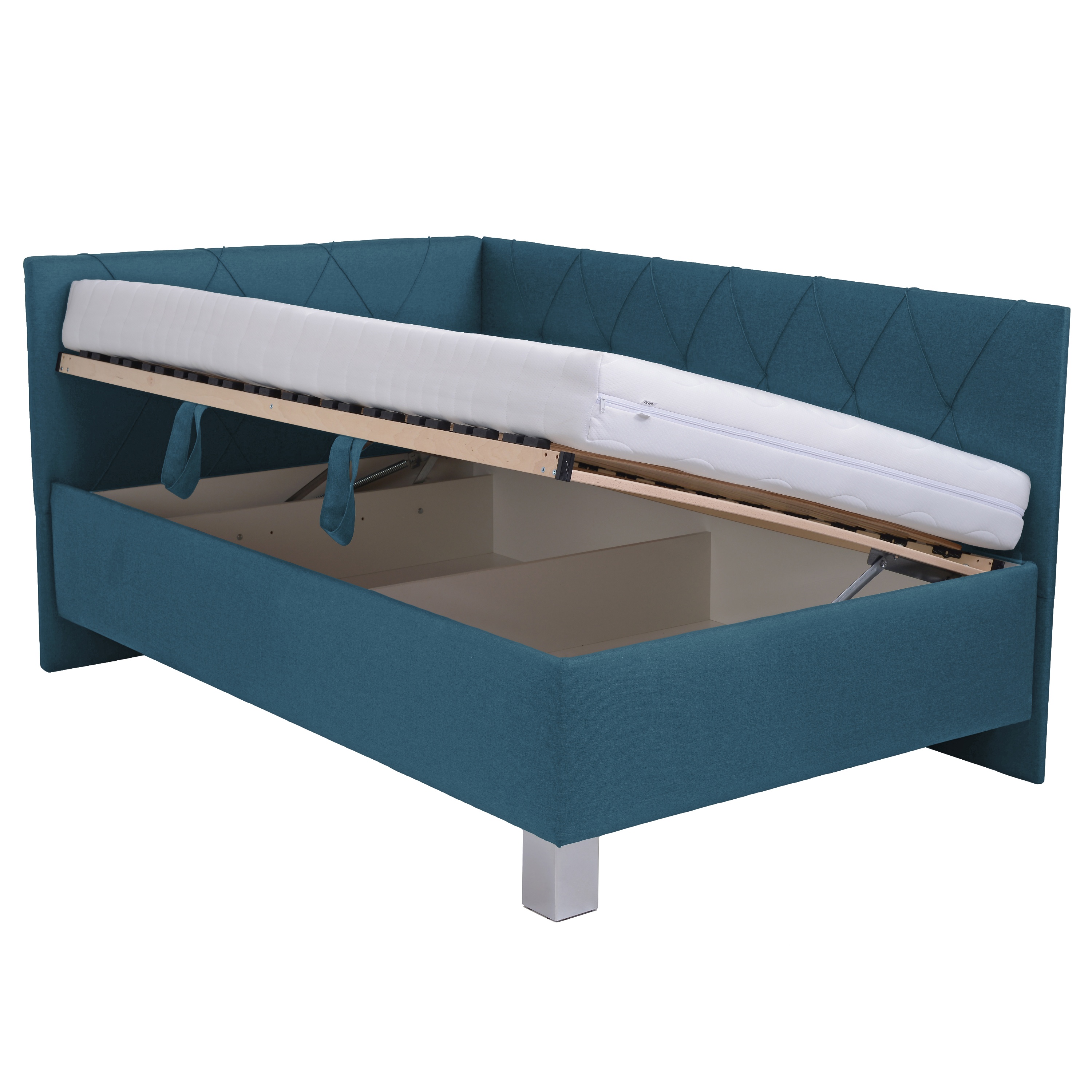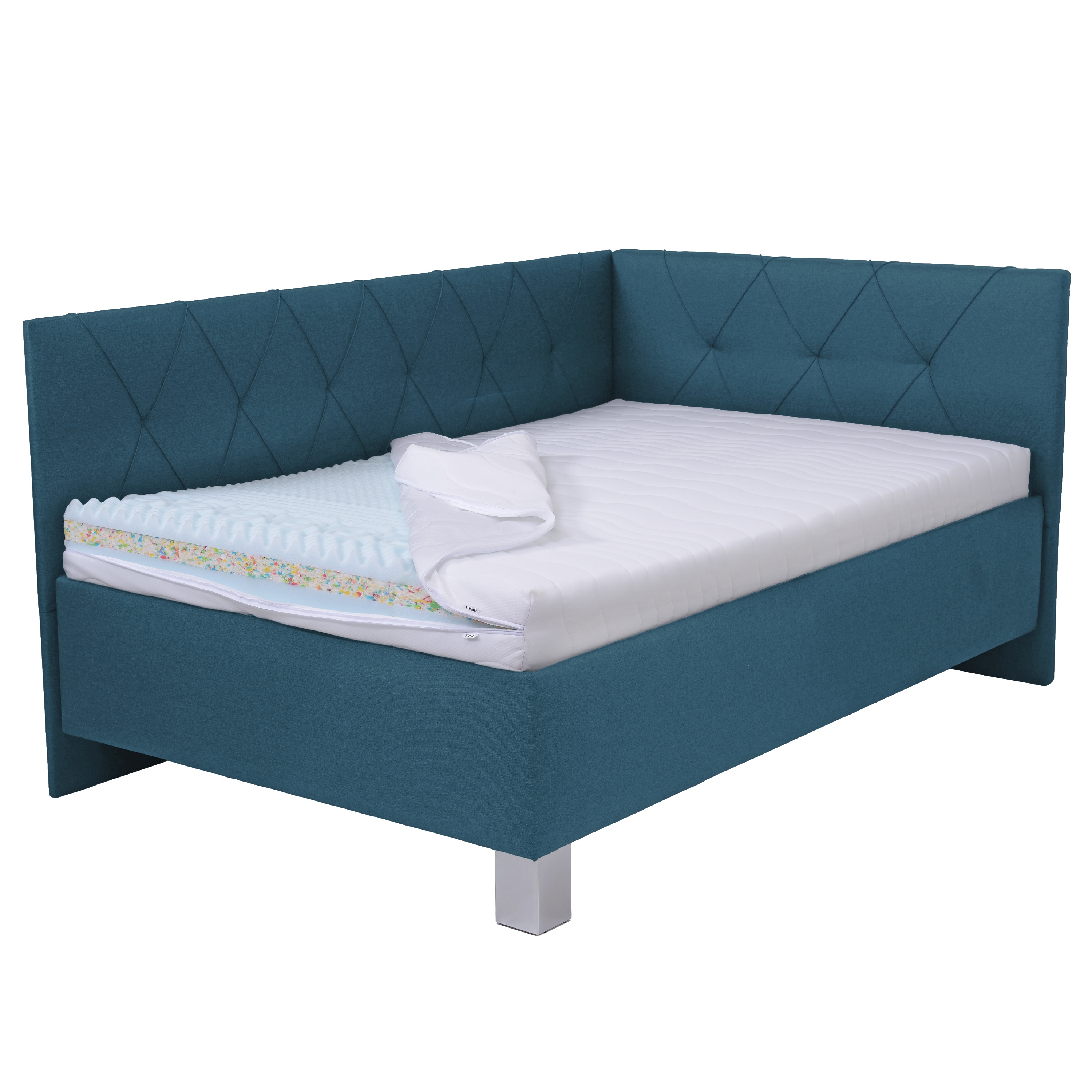 Rohová posteľ s matracom AFRODITE - petrolejová, 120x200 cm
