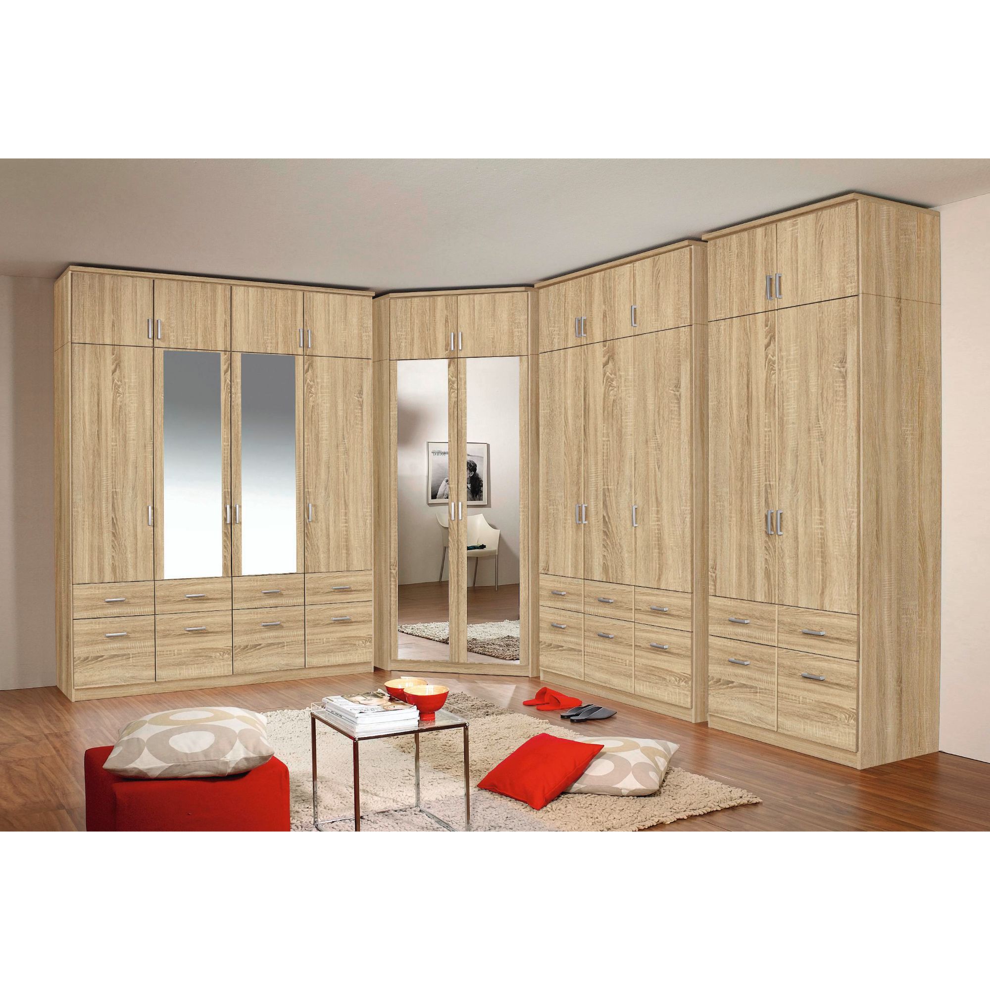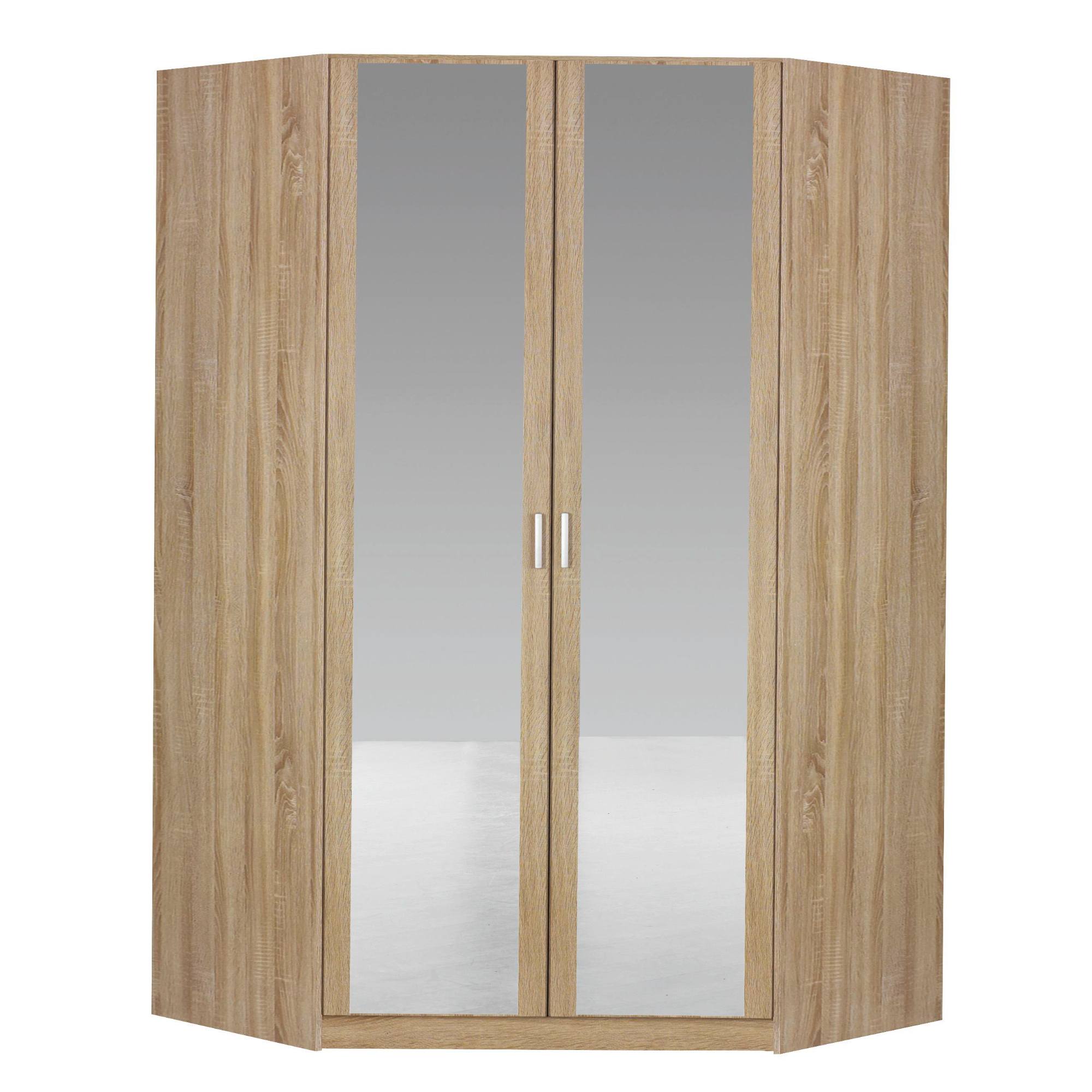Rohová šatníková skriňa BENETT - dub sonoma, 2 zrkadlá