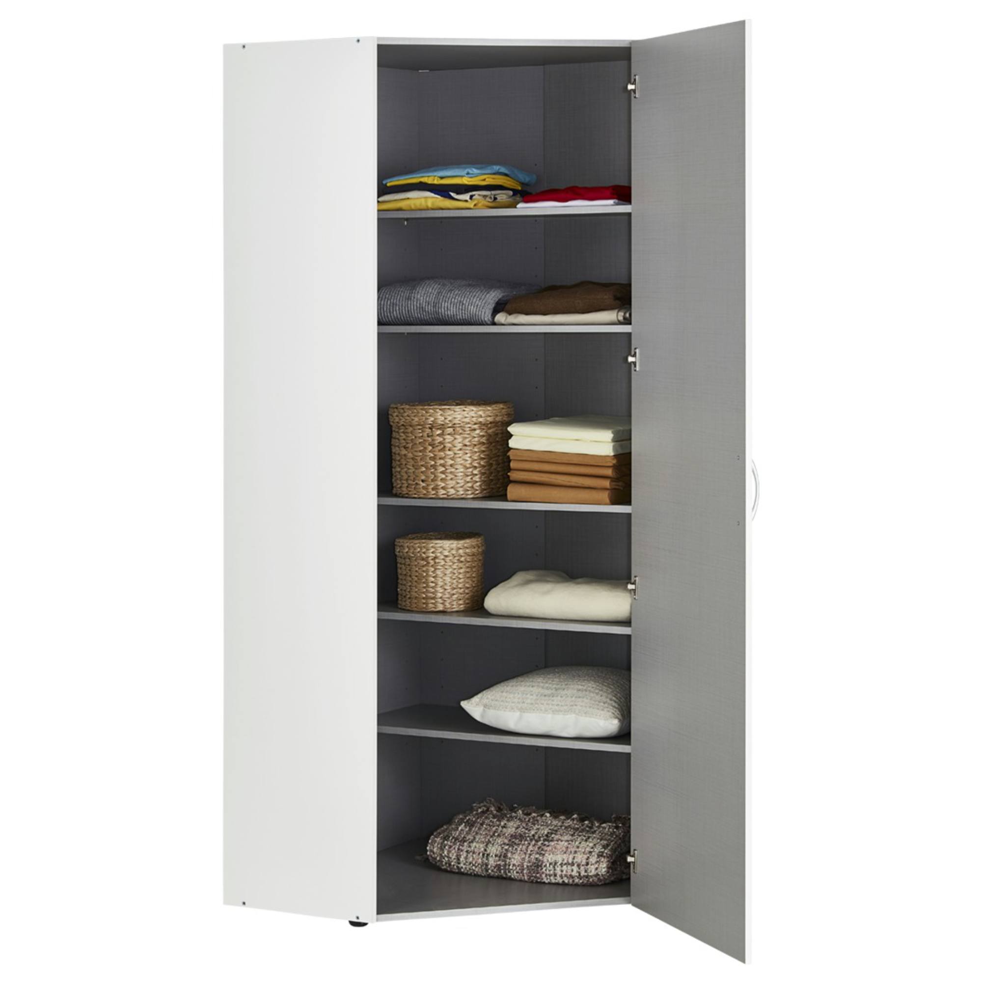 Skriňa je uzatvárateľná pomocou 1 otočných dverí, za ktorými sa nachádza prakticky členené vnútorné vybavenie vo forme 5 vložených políc. Decentné rúčky uľahčujú otváranie jednotlivých častí skrine. Korpus je vyrobený z laminovaného dreveného materiálu a dvierka z fóliovaného dreveného materiálu. Tieto materiály sú nenáročné na údržbu. Chcete mať interiér zjednotený do jedného štýlu? Pozrite sa na ďalší nábytok z rovnomenného nábytkového programu MULTIRAUMKONZEPT.