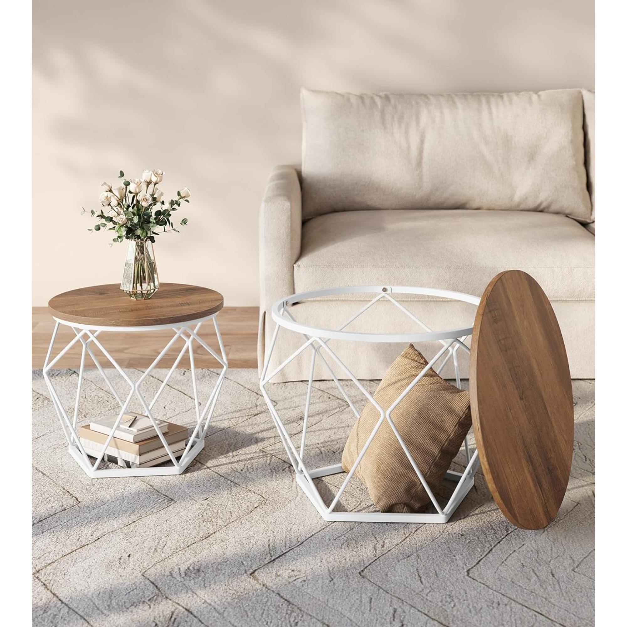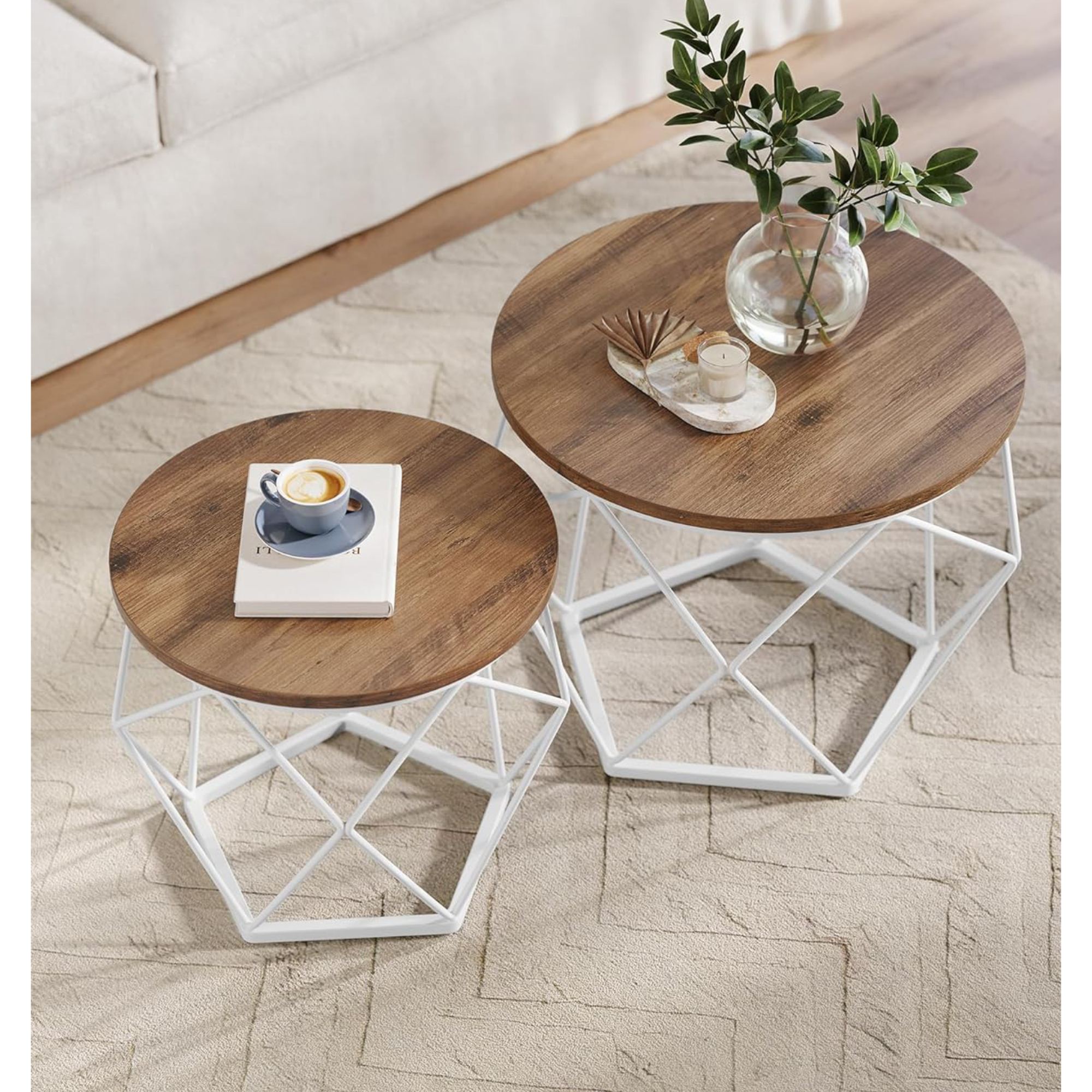 Sada 2 ks prístavných stolíkov ROUND - biela/hnedá