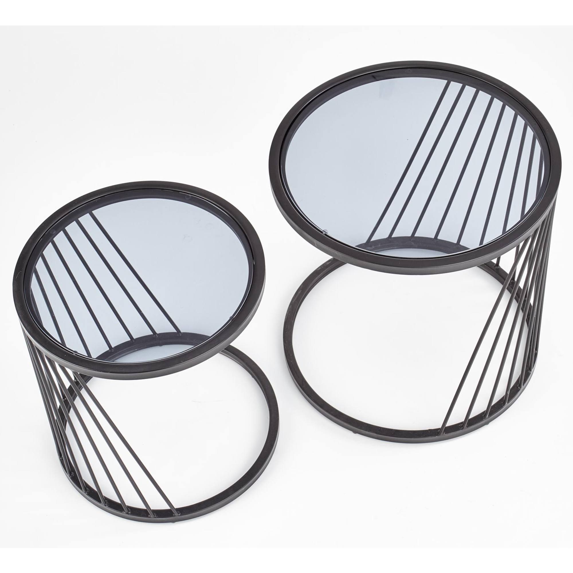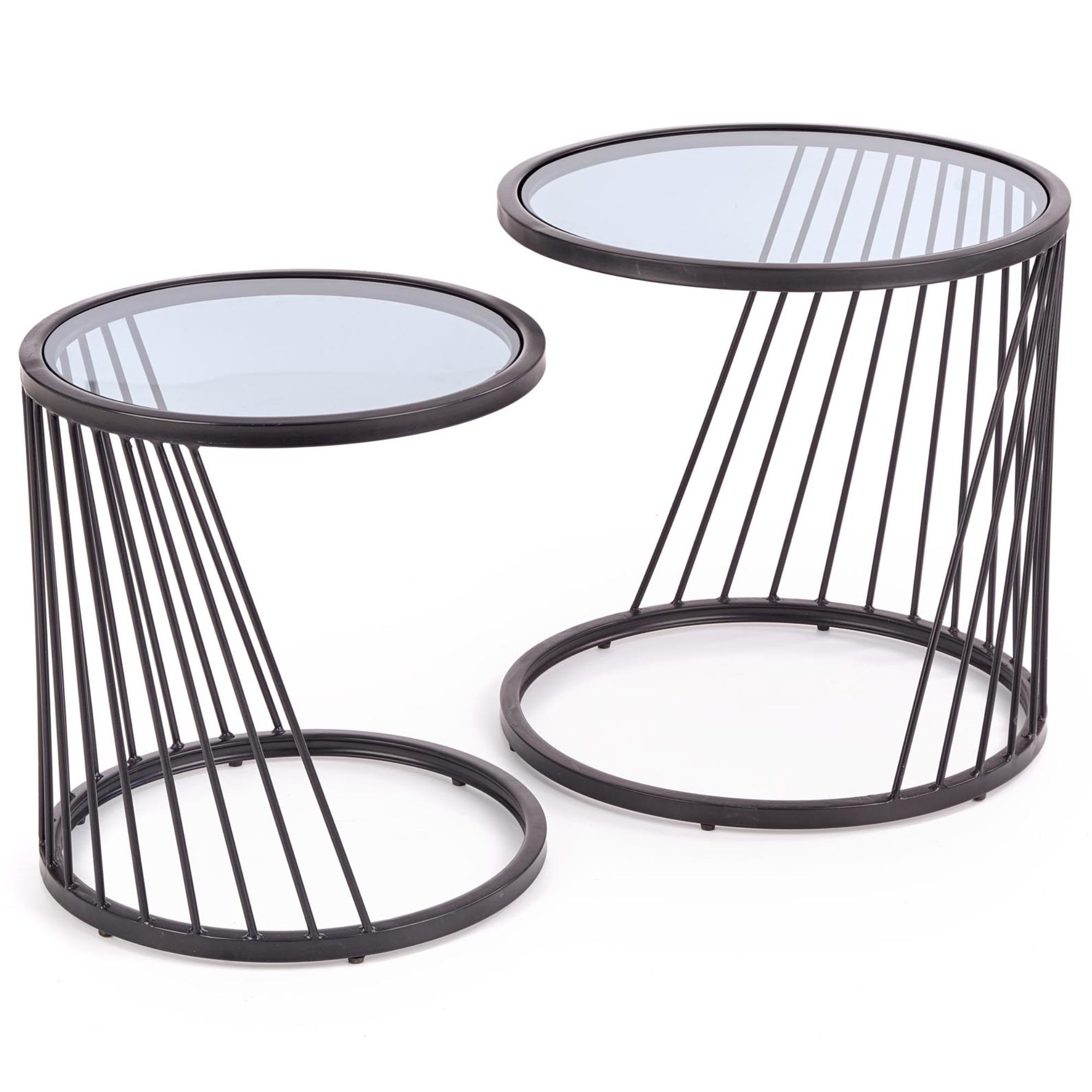Sada 2 prístavných stolkov POSEIDON - čierna/dymové sklo