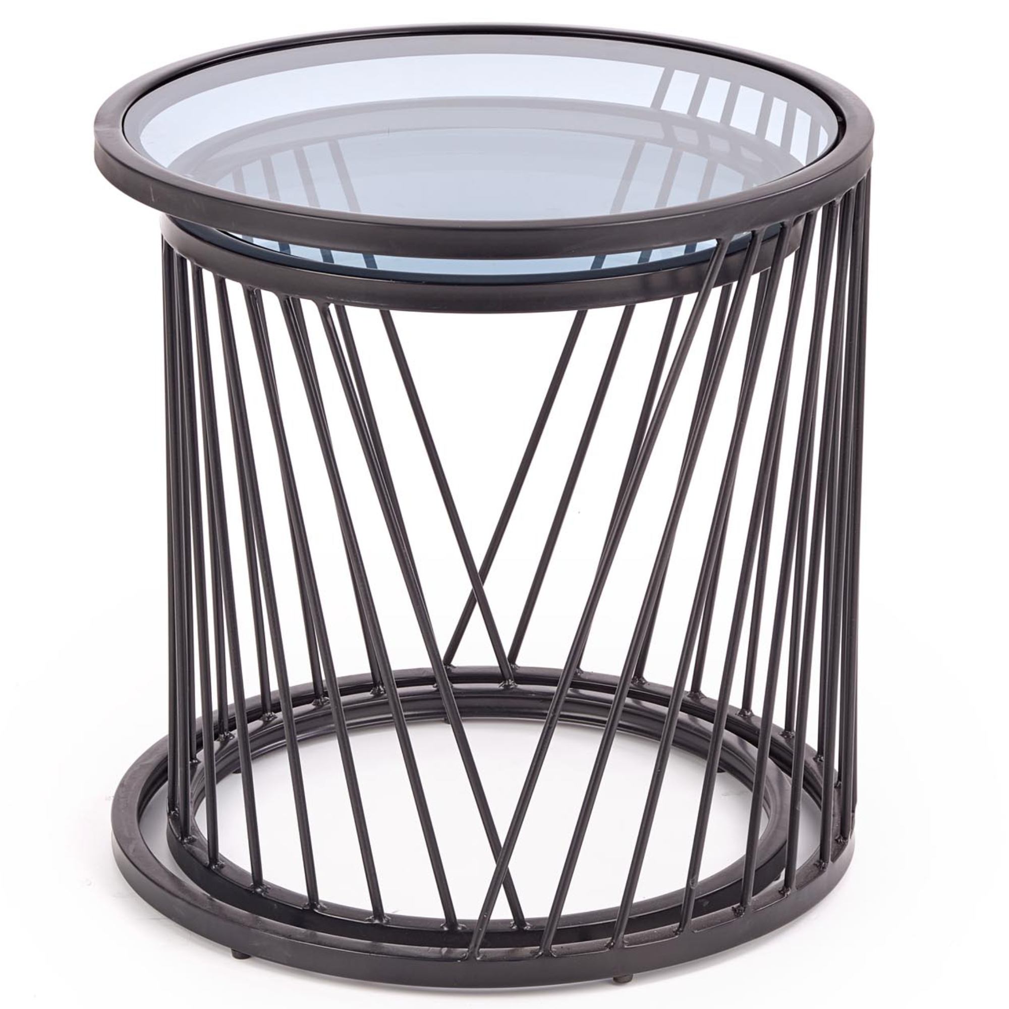 Sada 2 prístavných stolíkov POSEIDON vás zaujme svojím nevšedným moderným dizajnom, ktorý predstavuje kombináciu čiernej farby na studenom kove so sklenenou doskou v dymovom odtieni. Sklenená doska stola je zasadená do konštrukcie zhotovenej z práškovo lakovanej ocele. Konštrukcia je tvarovaná symetricky zatočenými priečkami, ktoré vyzdvihujú originálny a štýlový vzhľad prístavných stolíkov.