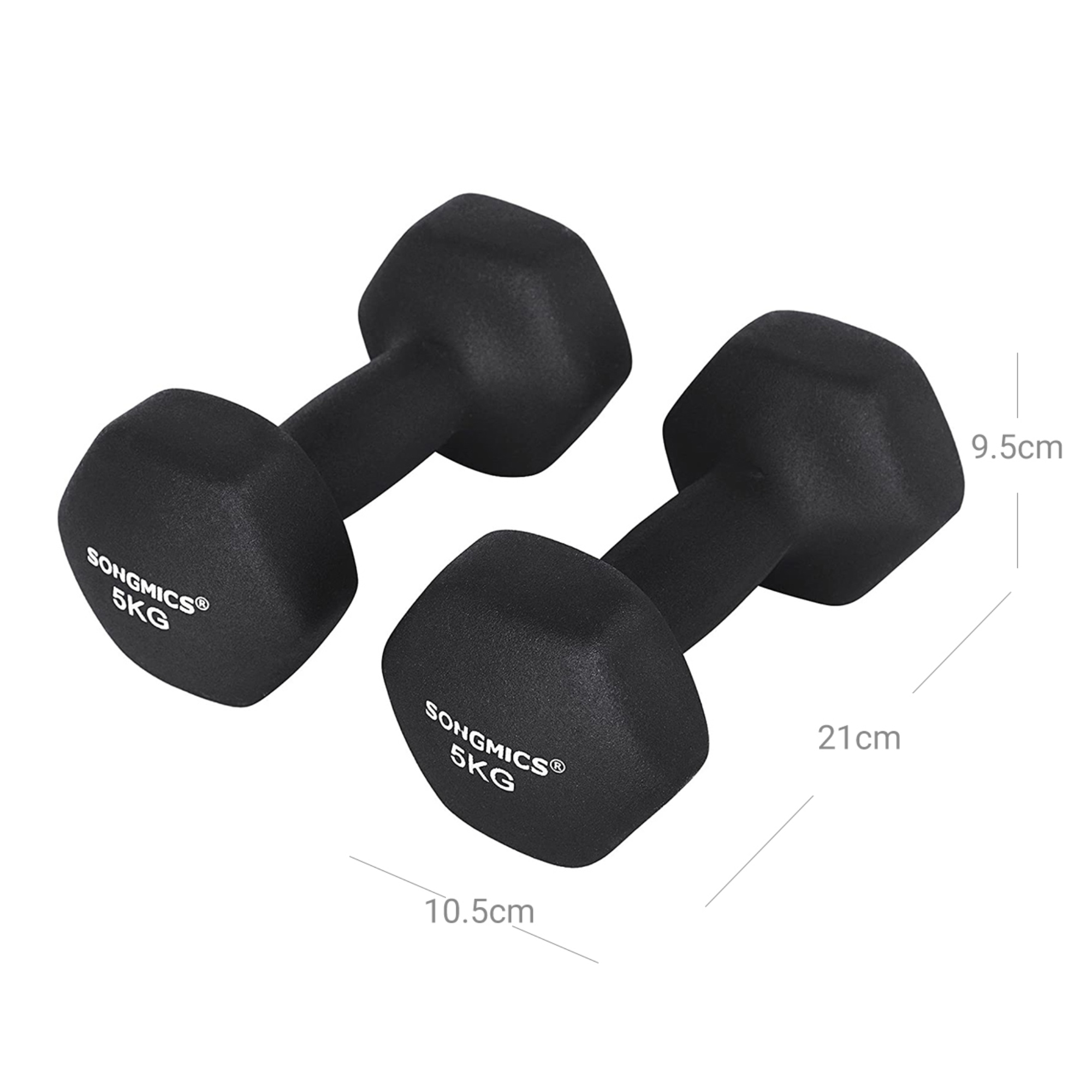 Činky sú vyrobené z liatiny a pokrýva ich vinylový povlak. Činky majú ergonomickú rukoväť, ktorá umožňuje ľahké uchopenie, a to aj v prípade, že máte spotené ruky. Vďaka šesťhrannému tvaru sa činky nekotúľajú, takže ich môžete bezpečne skladovať kdekoľvek v dome.