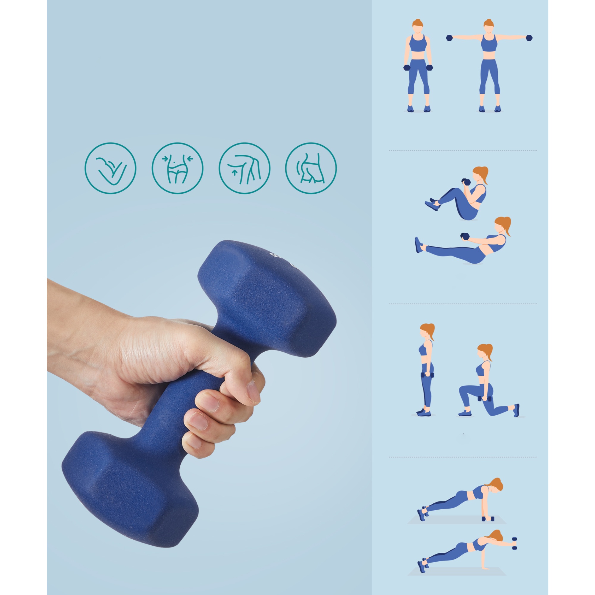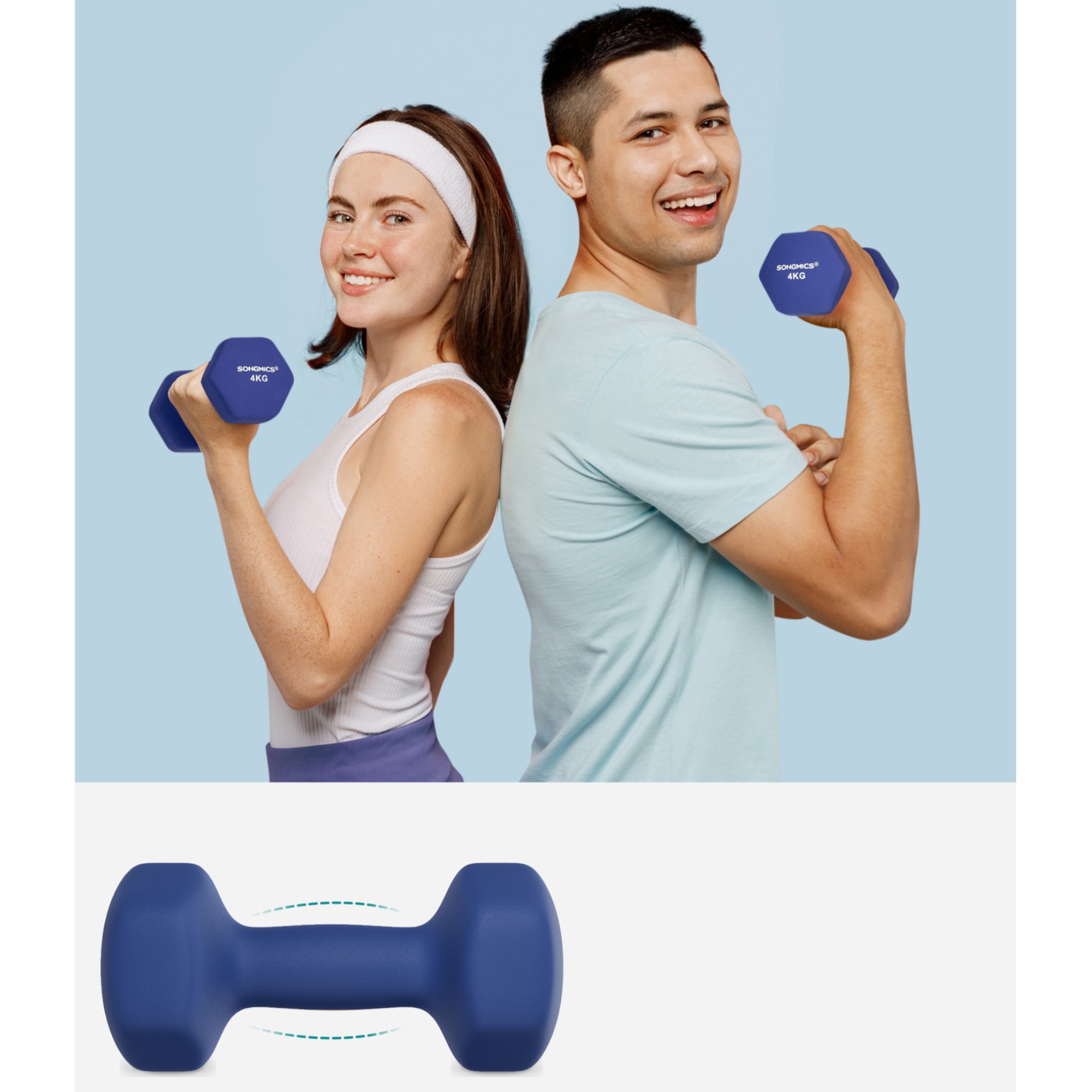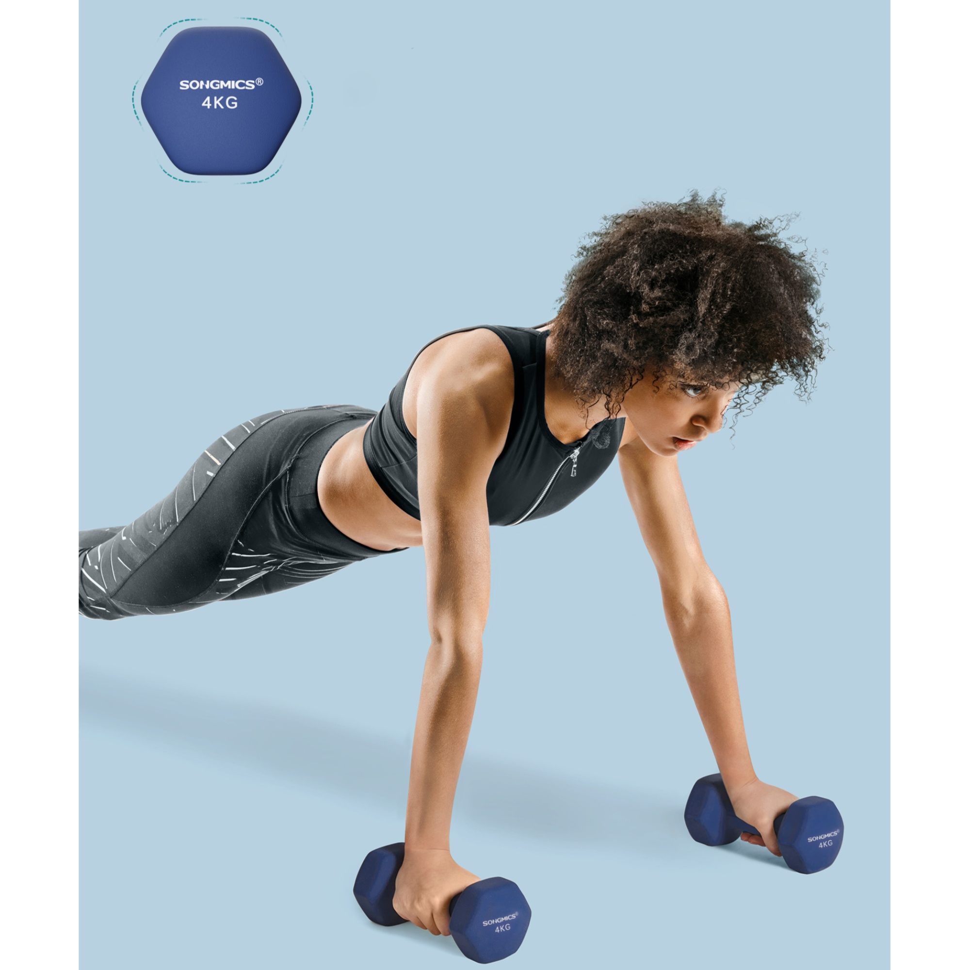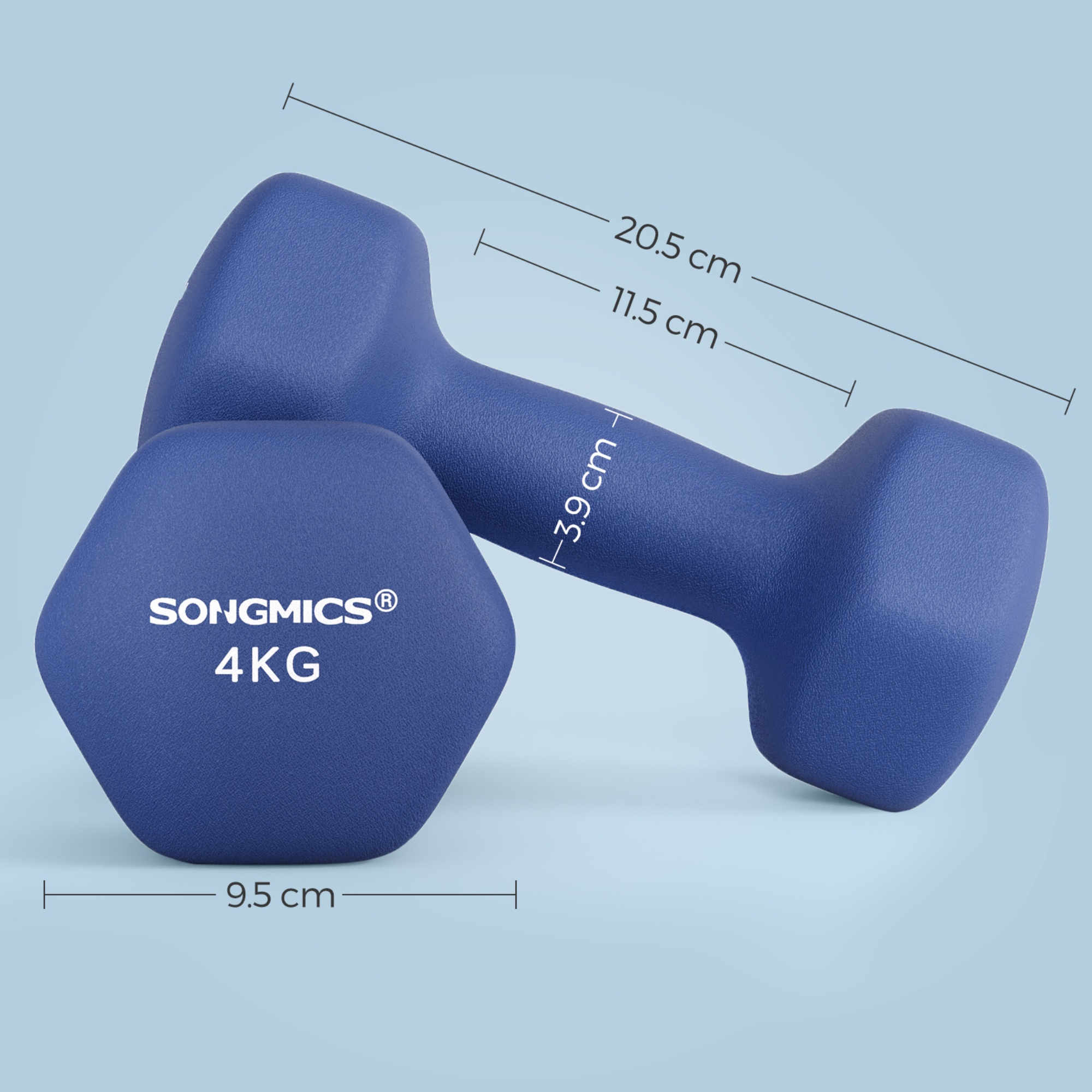 Činky sú vyrobené z ocele a pokrýva ich mäkký gumový materiál, ktorý utlmí prípadný náraz na podlahu. Činky majú ergonomickú rukoväť, ktorá umožňuje ľahké uchopenie, a to aj v prípade, že máte spotené ruky. Vďaka šesťhrannému tvaru sa činky nekotúľajú, takže ich môžete bezpečne skladovať kdekoľvek v dome.