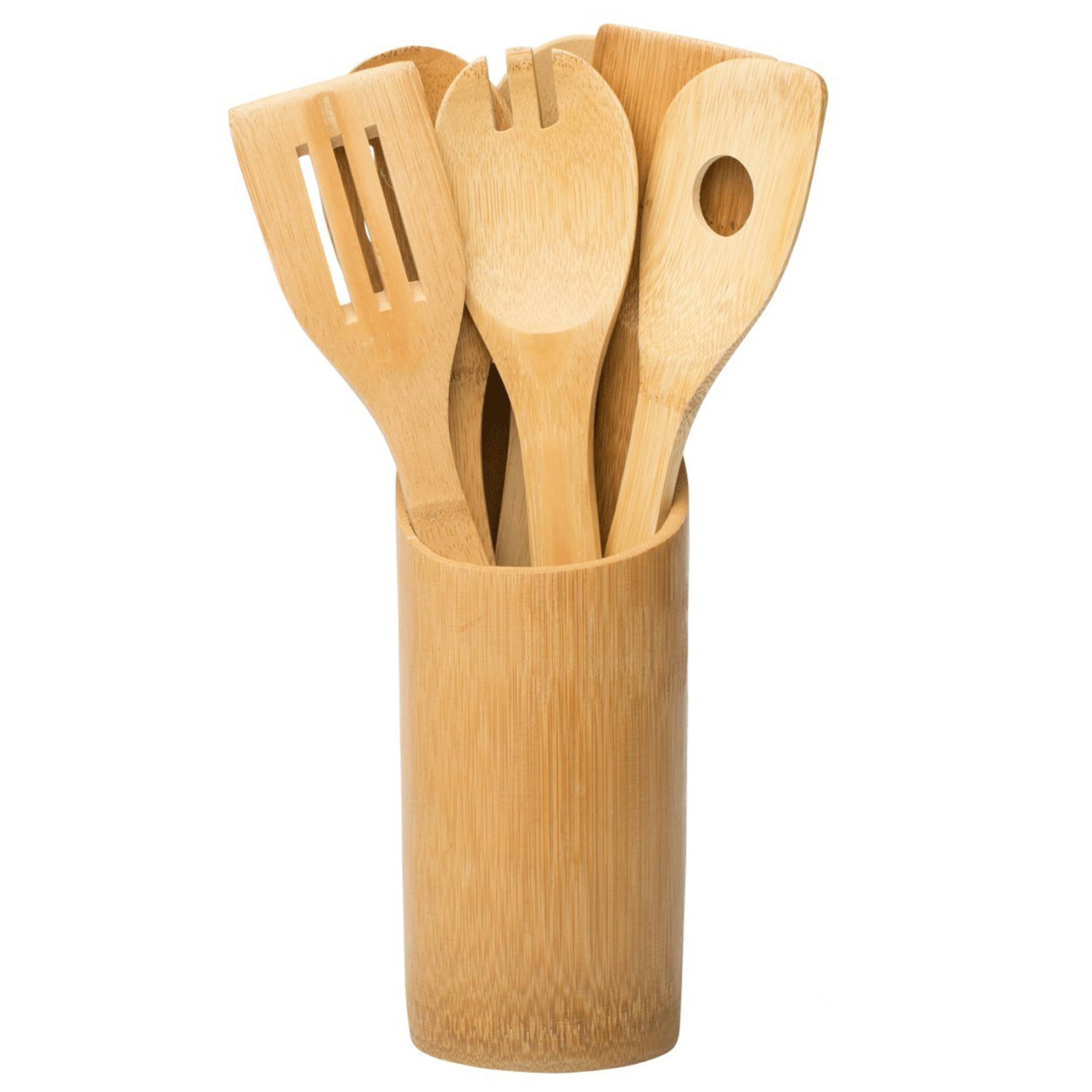 Pre ľahké usporiadanie kuchynského náčinia sa vám bude hodiť táto sada varešiek BAMBUS. Univerzálna sada sa skladá zo šiestich drevených bambusových varešiek a všetky sa dajú využiť na niečo iné pri varení pokrmov. Sú jednoduché na údržbu, pretože sú z materiálu z bambusového dreva. Vďaka tomu sa dajú tiež používať na všetky hrnce či panvice.