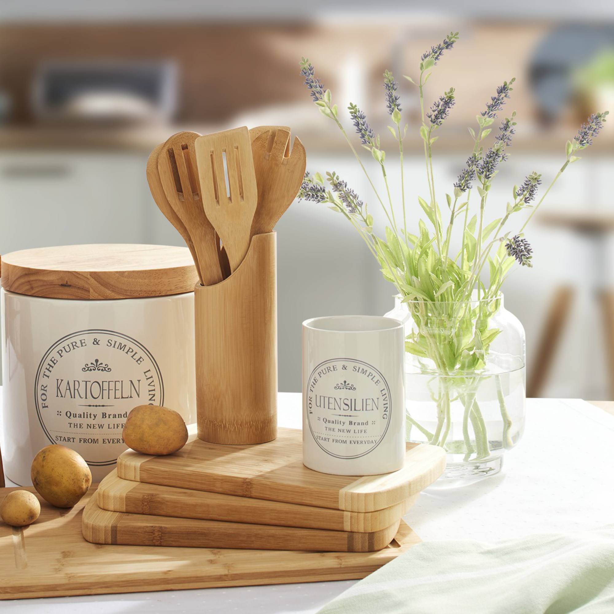 Varešky majú otvor na konci rukoväte, takže ich môžete kamkoľvek zavesiť. V sade je bambusová dóza na odloženie všetkých varešiek. So sadou BAMBUS bude varenie jednoduché!