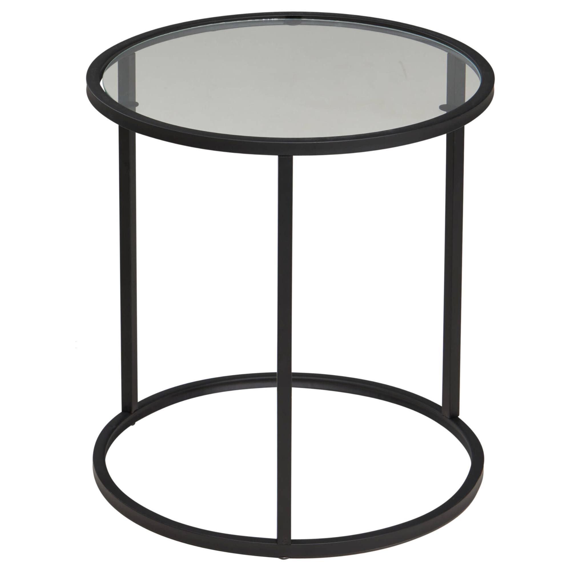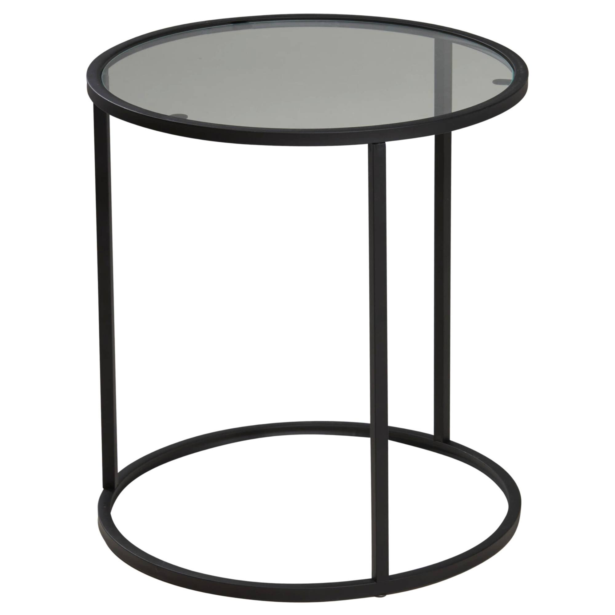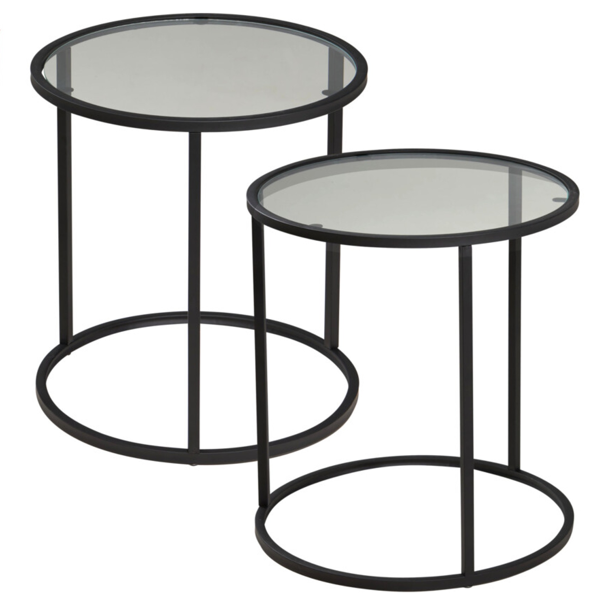Sada obsahuje 2 stolíky v rôznych veľkostiach s priemerom 38 a 35 cm. Majú stabilnú kovovú konštrukciu v čiernej farbe s nohou v tvare O. Vrchná doska s nosnosťou 5 kg je vyrobená z tvrdeného skla, ktoré je odolnejšie proti nárazu a pri rozbití jeho neostré úlomky minimalizujú riziko zranenia. Stolíky ponúkajú dostatok priestoru na odloženie nápojov, kníh či občerstvenia.
