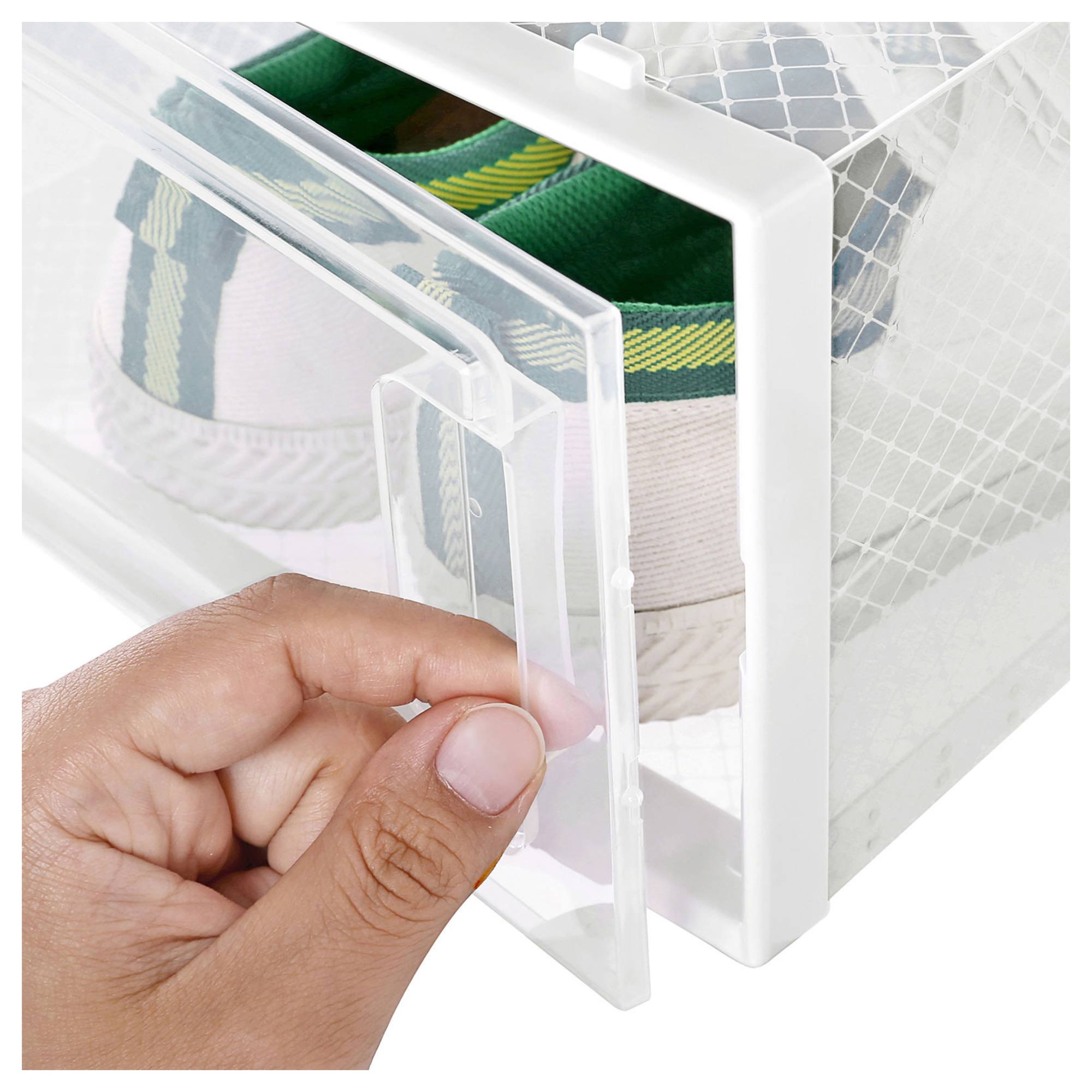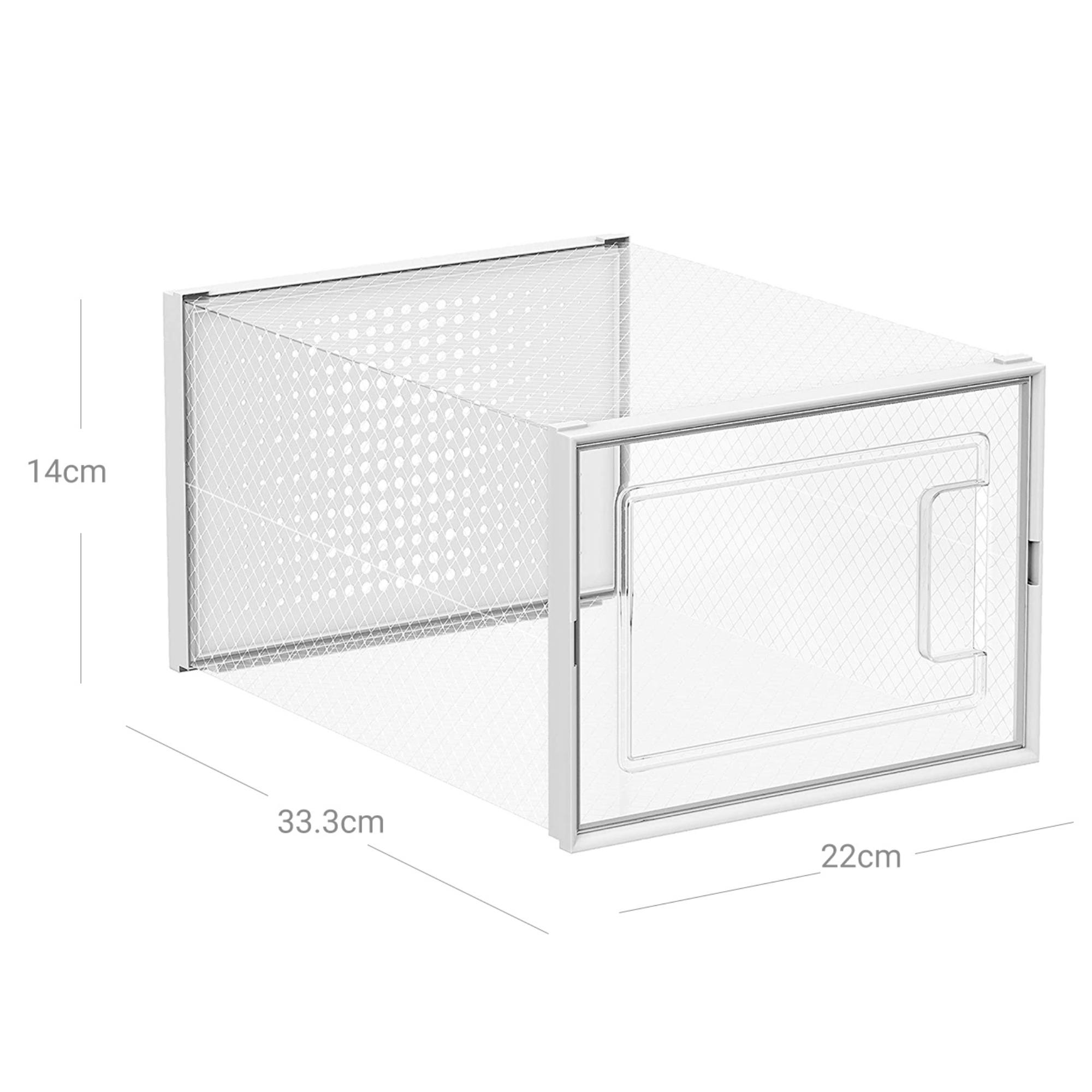 Sada úložných boxov FIT UP ponúka praktické riešenie na skladovanie veľkého množstva obuvi. Sada sa skladá z 8 kusov, ktoré sú vyrobené z priesvitného a ľahko umývateľného plastu. Každý z boxov je vybavený uzatvárateľnými dvierkami a z druhej strany praktickými vetracími otvormi. Boxy je možné stohovať podľa vášho uváženia a ušetriť tak veľa cenného miesta. S boxami FIT UP budú mať vaše topánky konečne svoje stále miesto.