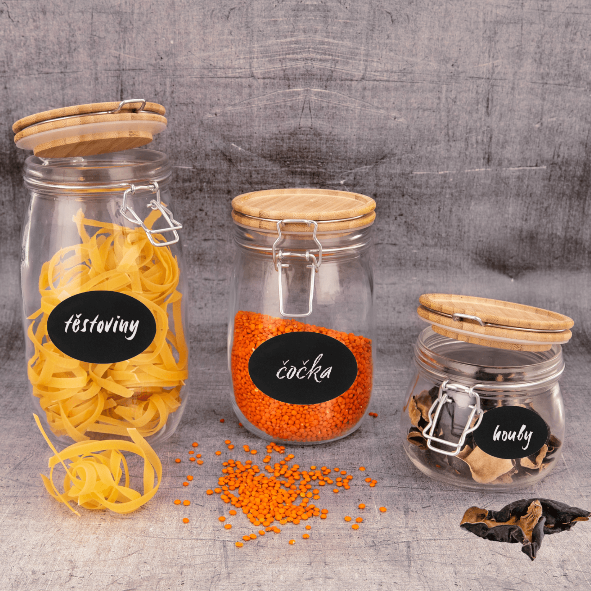 Z chaosu na poriadok behom chvíľky. Čierne oválne samolepky BLY zaistia, že všetky vaše nepopísané dózy, koreničky a úložné boxy budú mať jasné určenie pre konkrétne potraviny, korenie a predmety. Hárok papiera obsahuje 14 ks papierových samolepiek v dvoch veľkostiach (8 väčších + 6 menších). Balenie je navyše doplnené o kriedu, ktorou je možné samolepky popisovať. Kriedu je navyše možné zo samolepky zmazať, takže keď do boxu, koreničky či dózy dáte niečo iné, ľahko popis prepíšete.