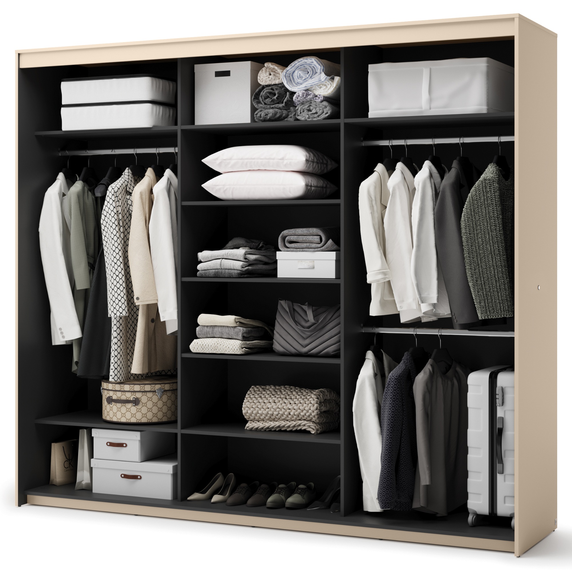 Šatní skříň TREND 2 - piesková/čierna