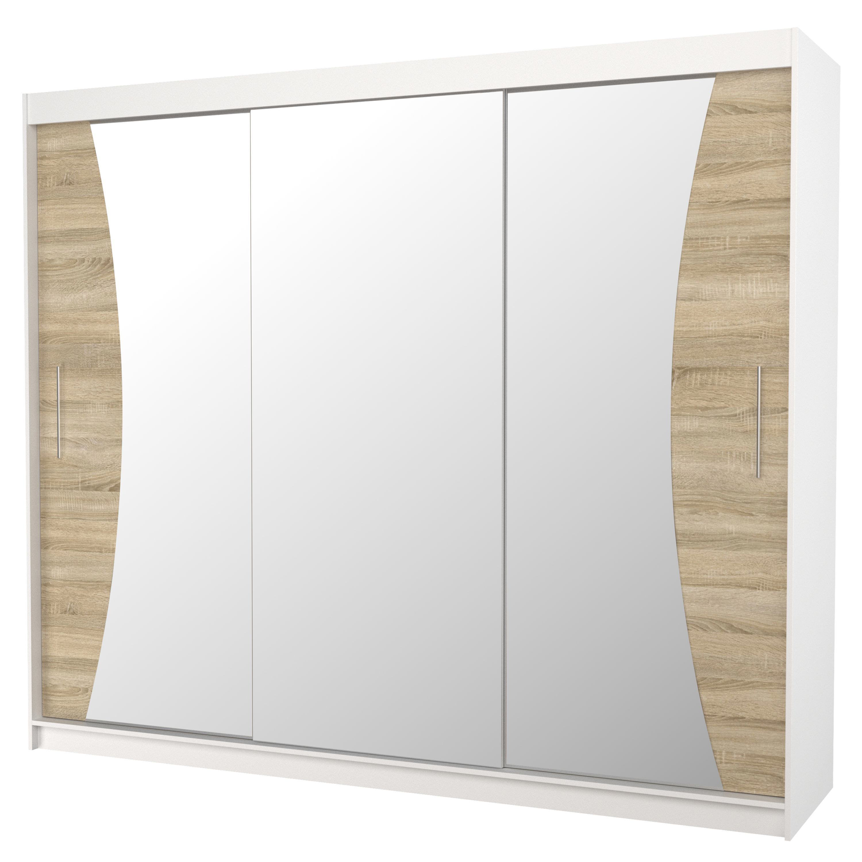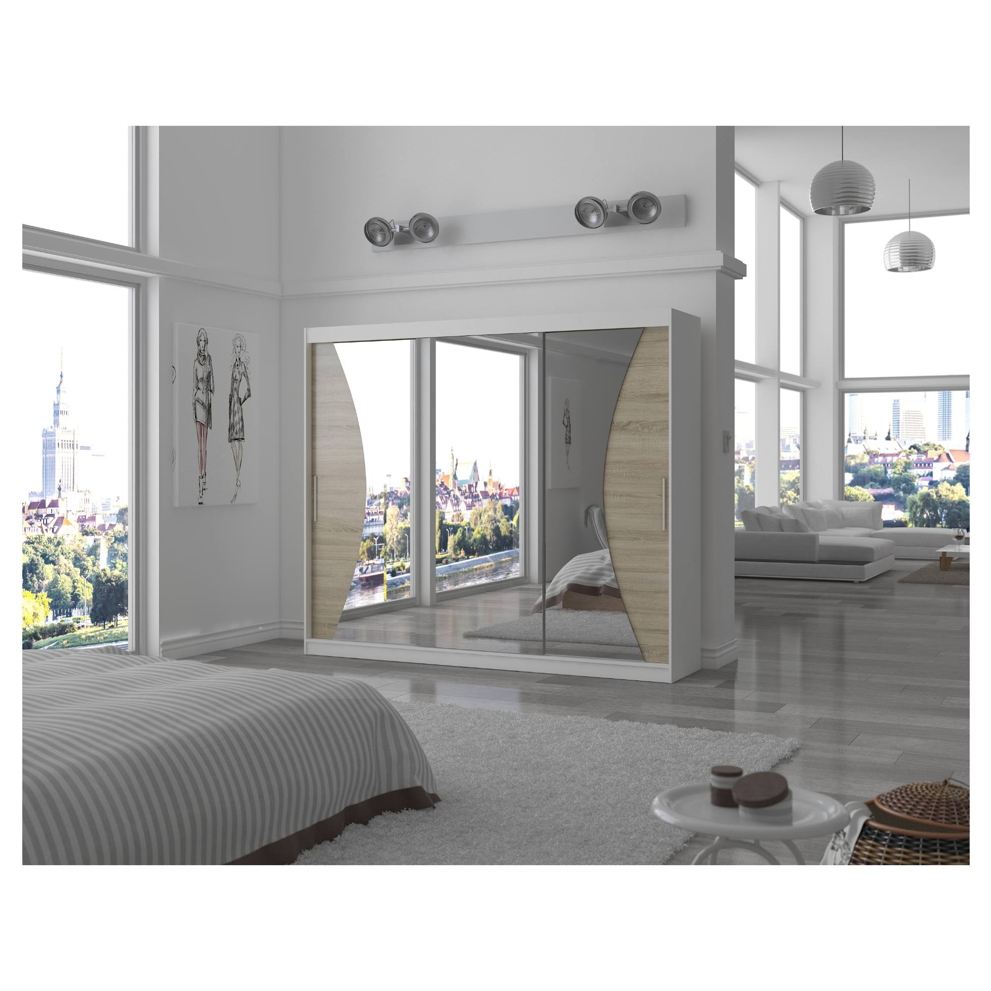 Disponuje posuvnými dverami s hliníkovými vodiacimi lištami pre plynulé a pohodlné otváranie. Dvere skrine sú doplnené veľkou zrkadlovou plochou, ktorá uľahčí vaše prípravy počas ranného zhonu a zároveň opticky zväčší priestor. Zároveň odráža viac svetla do miestnosti, čím pôsobí interiér svetlejšie.