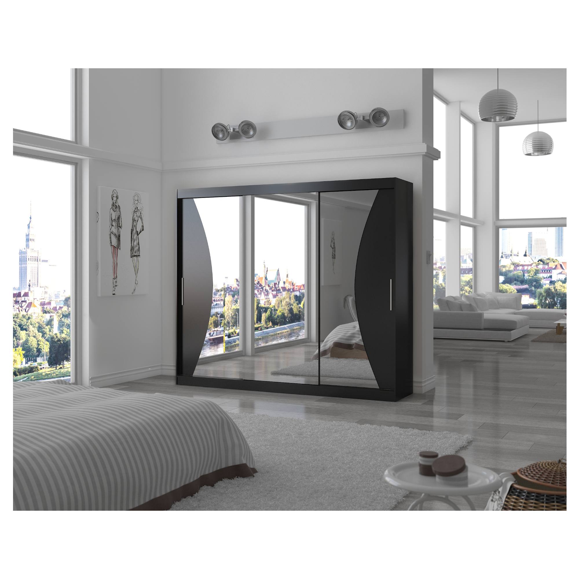 Disponuje posuvnými dverami s hliníkovými vodiacimi lištami pre plynulé a pohodlné otváranie. Dvere skrine sú doplnené veľkou zrkadlovou plochou, ktorá uľahčí vaše prípravy počas ranného zhonu a zároveň opticky zväčší priestor. Zároveň odráža viac svetla do miestnosti, čím pôsobí interiér svetlejšie.