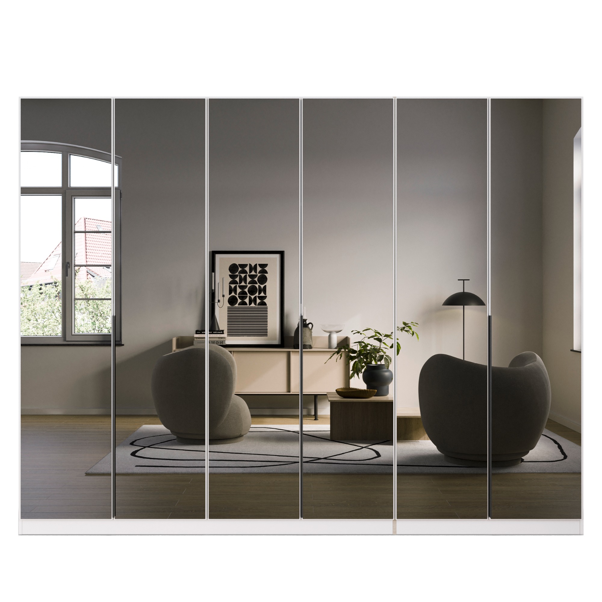 - 6 otočných, zrkadlových dverí