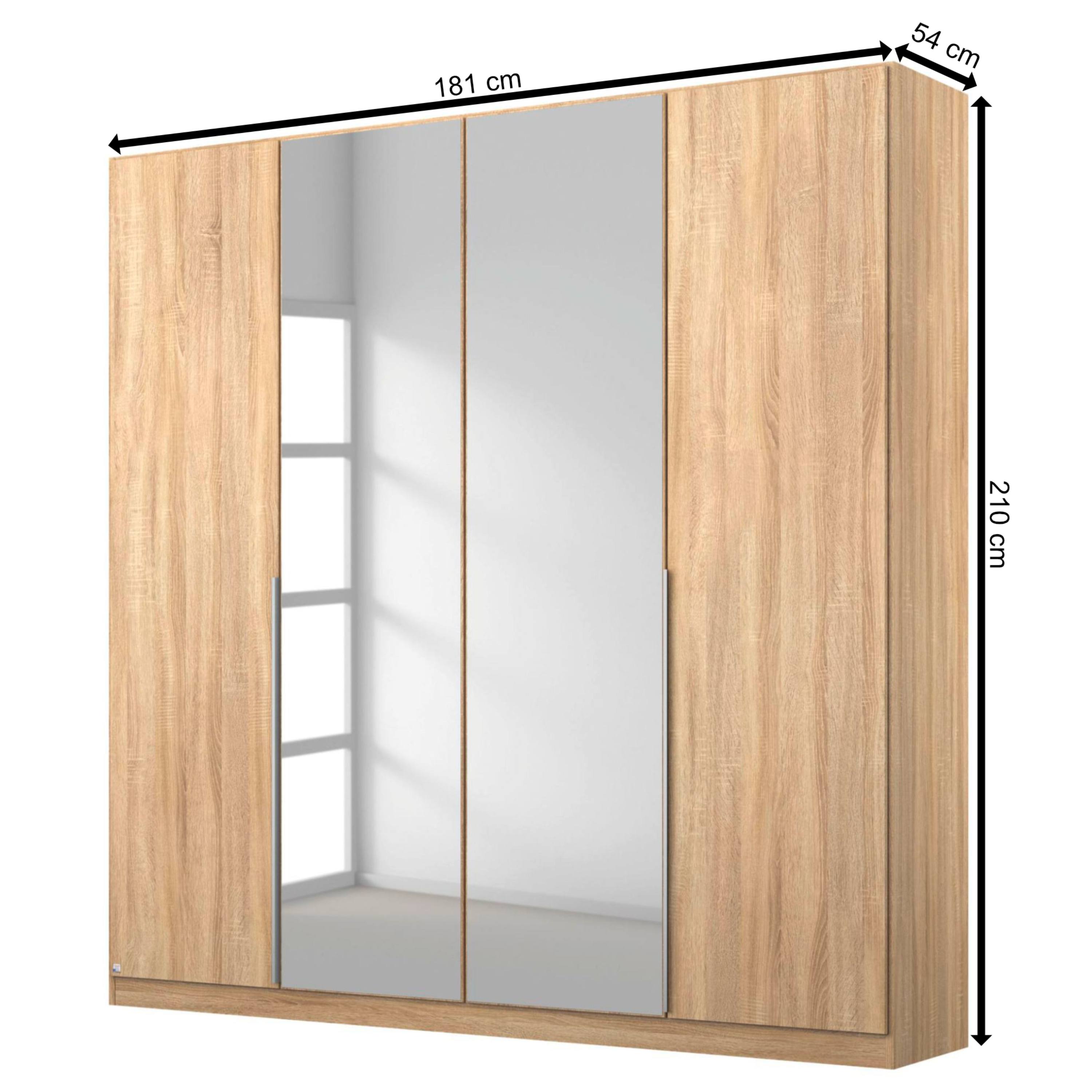 Šatníková skriňa ARIANNA - dub sonoma, 4 dvere, 2 zrkadlá