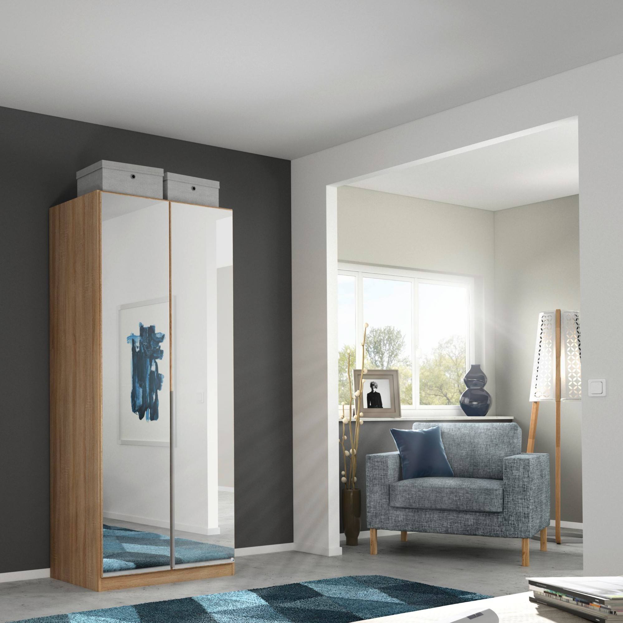 Šatníková skriňa ARIANNA - dub sonoma, 91 cm, 2 zrkadlá