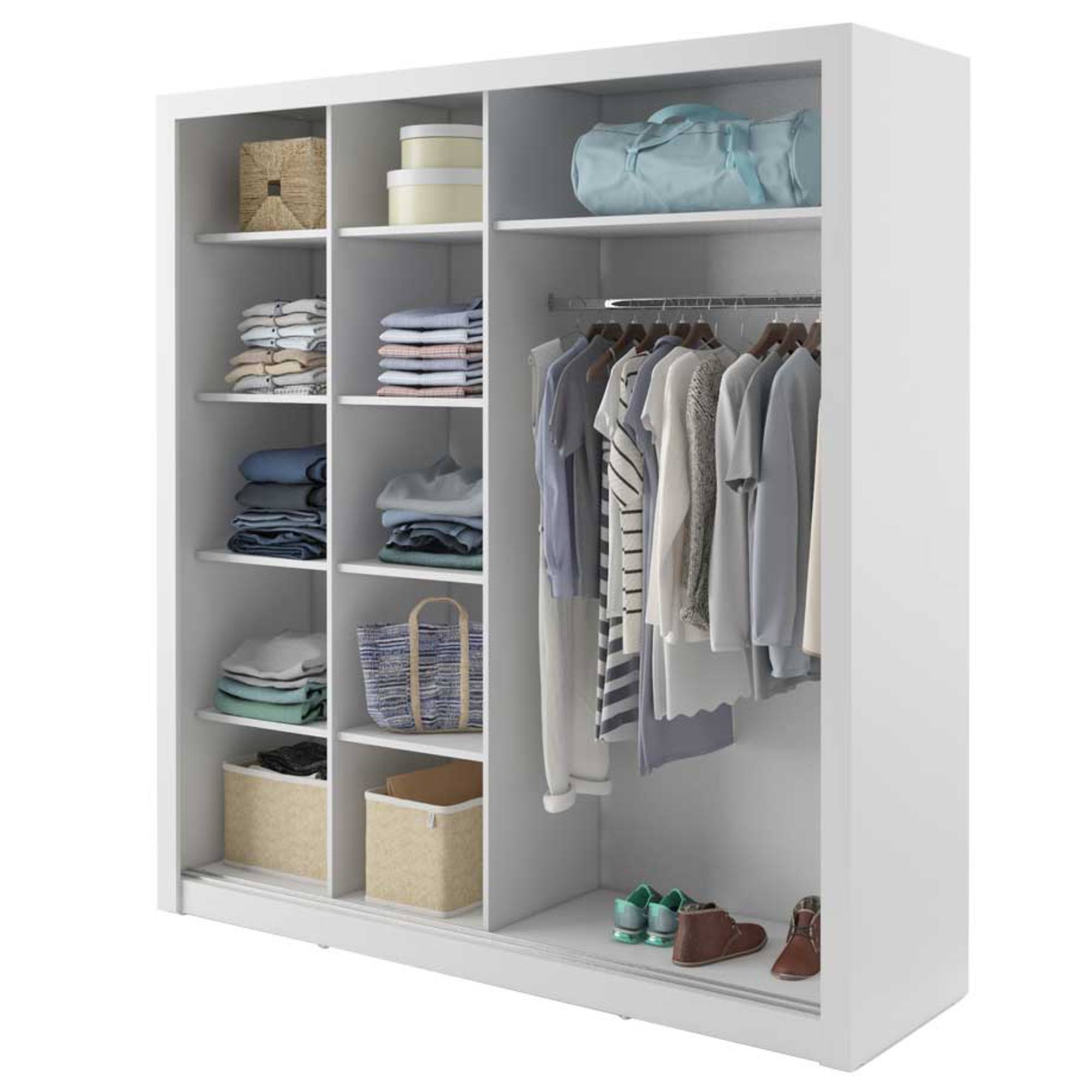 Priestranná a praktická šatníková skriňa ARIEL ideálna do akejkoľvek spálne. Vďaka posuvným dverám je vhodná do menších priestorov.