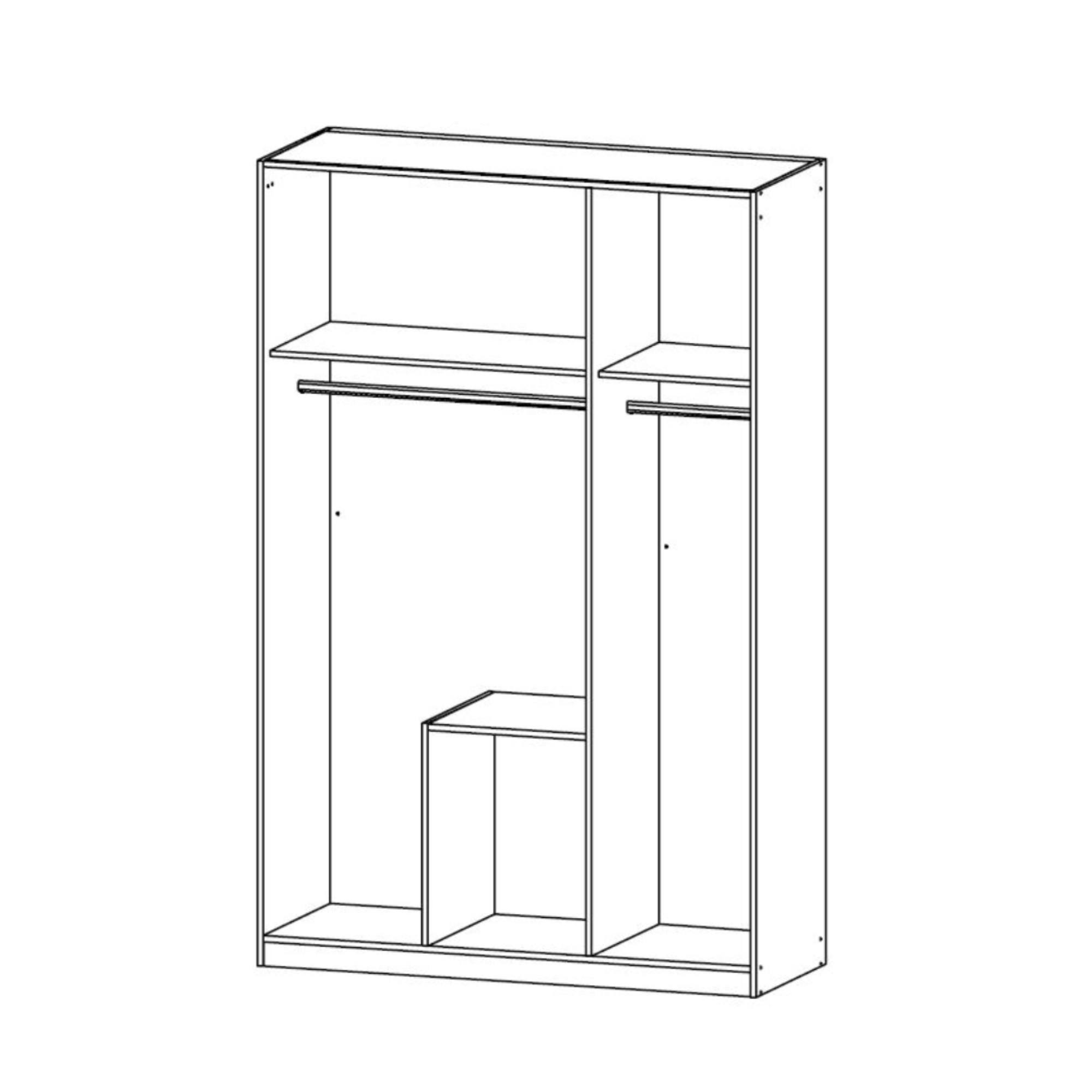 Skriňa sa otvára pomocou 3 otočných dverí, pričom jedny z nich sú vybavené zrkadlom. Pod zrkadlovými dverami sa nachádzajú 2 zásuvky. Členené vnútorné vybavenie skrine je usporiadané tak, aby ponúkalo čo najviac úložného priestoru. Prvý blok skrine obsahuje 1 vloženú policu a 1 šatníkovú tyč. Druhý blok má tie isté elementy, taktiež 1 vloženú policu a 1 šatníkovú tyč. Skriňa je vyrobená z drevotriesky a jej povrch je špeciálne tlačený. Tento povrch zaručuje ľahkú údržbu a dlhú životnosť bez obáv z odlupovania. Chcete mať interiér zjednotený do jedného štýlu? Pozrite sa na ďalší nábytok z rovnomenného nábytkového programu AULIN.