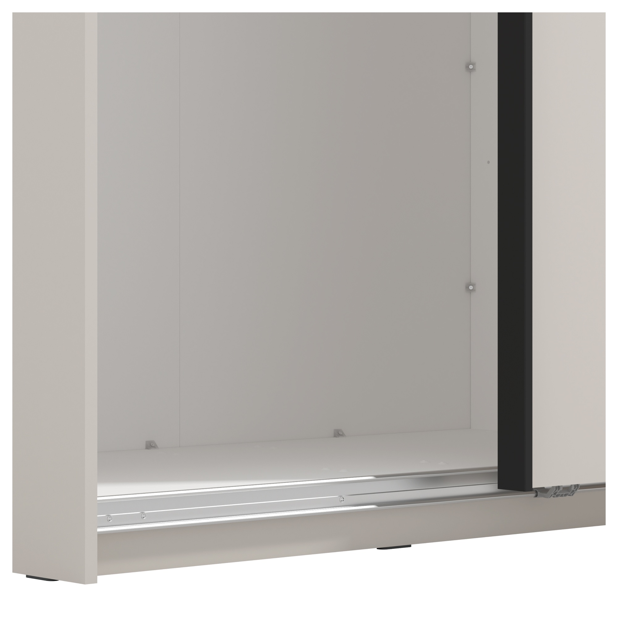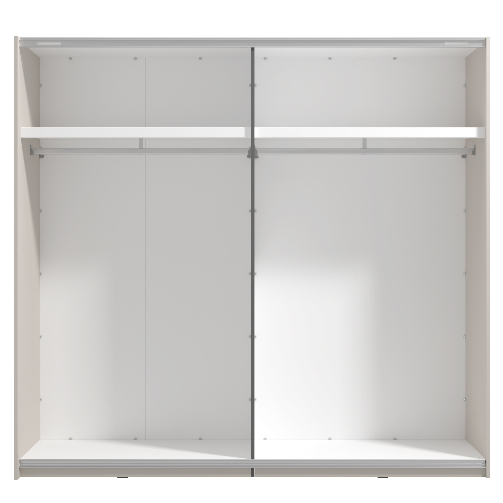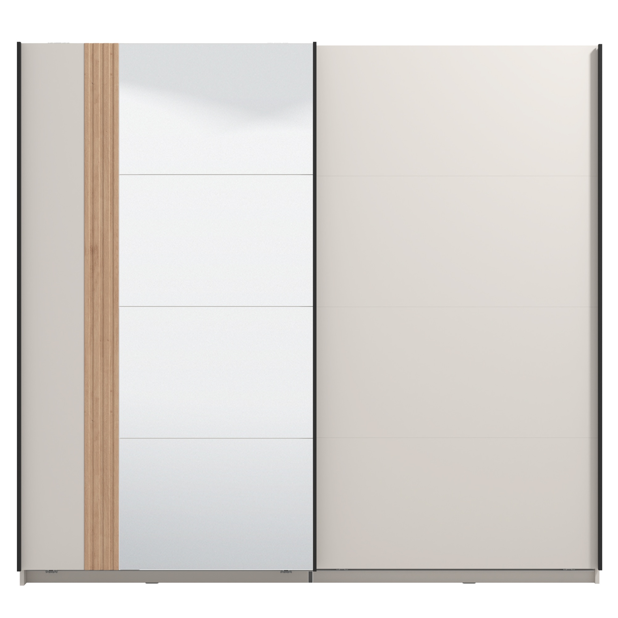 Skriňa je uzatvárateľná pomocou páru posuvných dverí, ktoré šetria cenné miesto zvonku aj vo vnútri skrine. Jedny z dverí sú navyše doplnené o praktické zrkadlo, ktoré vám umožňuje si kedykoľvek upraviť svoj vzhľad. Vnútorné vybavenie skrine pozostáva celkom z 2 vložených políc a 2 šatníkových tyčí. Ponúka tak dostatok miesta na uloženie vášho oblečenia a doplnkov. Vyrobená je z laminovanej drevotriesky s povrchom nenáročným na údržbu.
