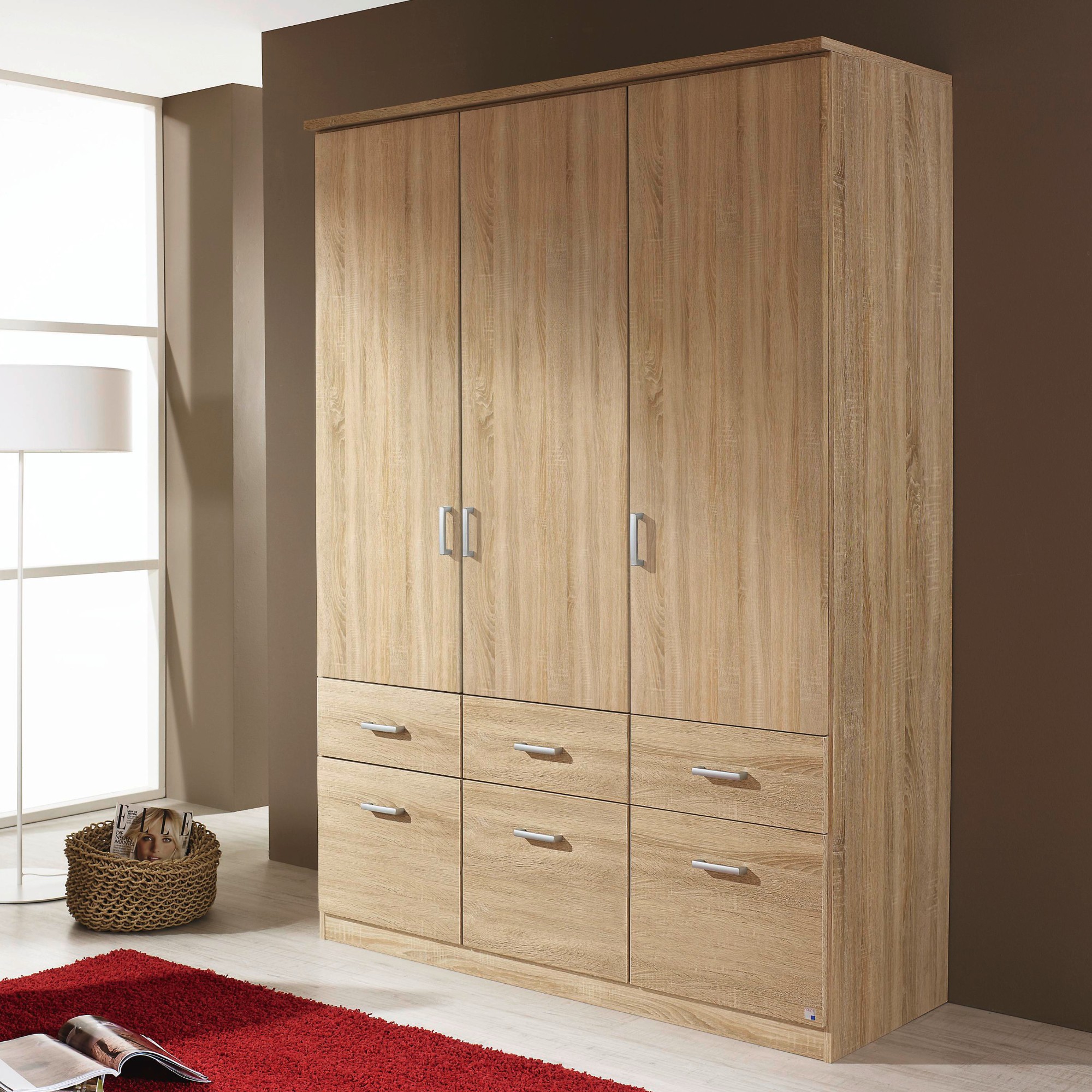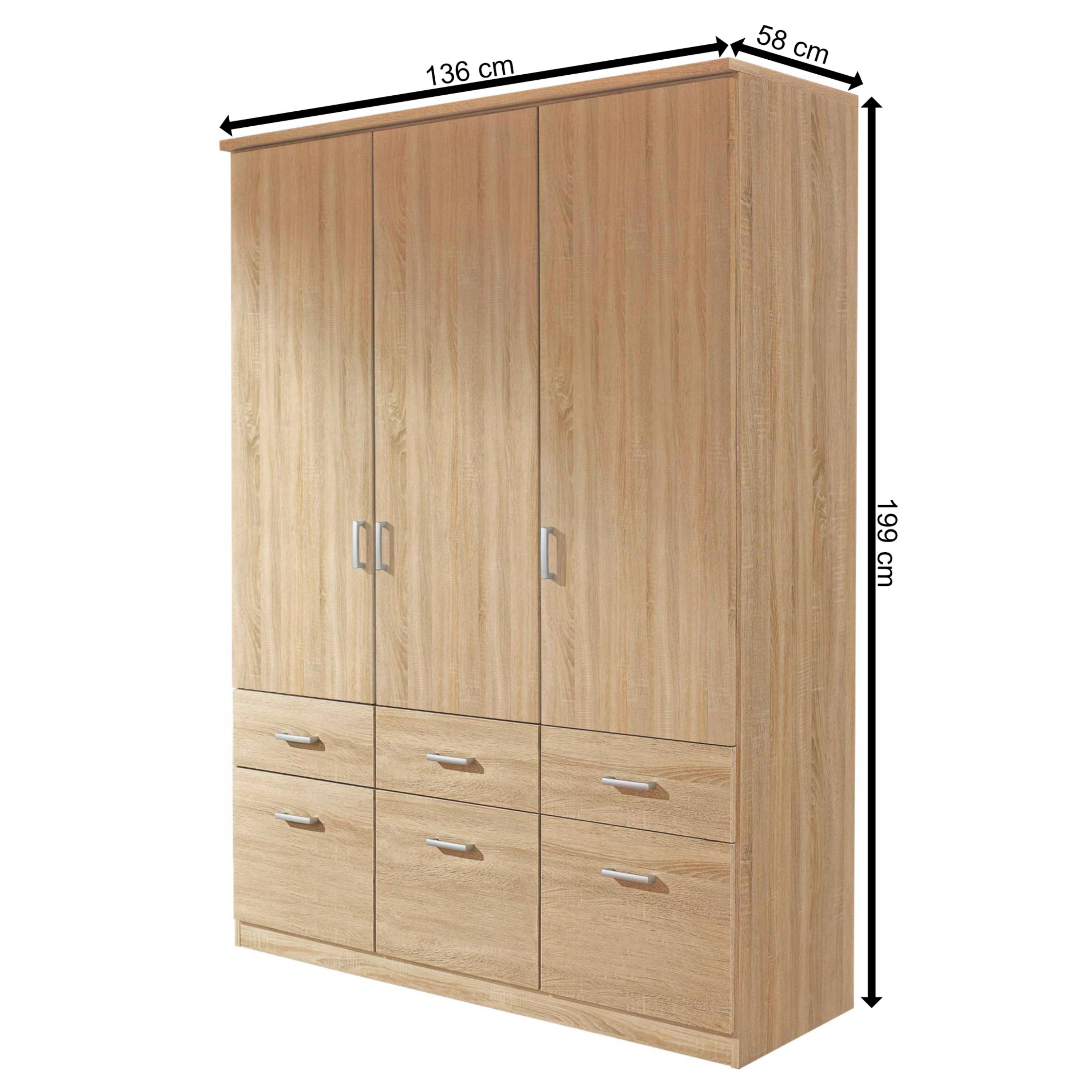 Šatníková skriňa BENETT - dub sonoma, 3 dvere, 6 zásuviek