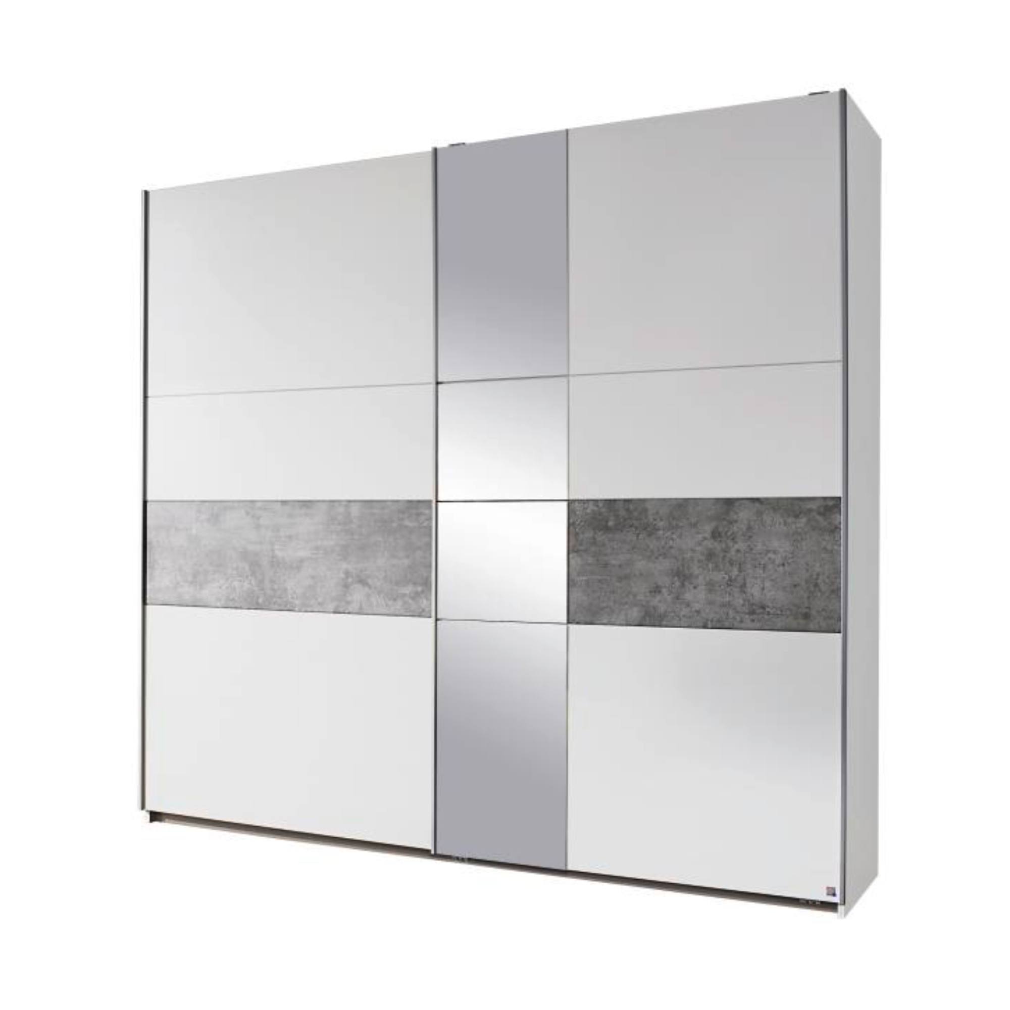 Šatníková skriňa CADENCE I - alpská biela/imitácia betónu, šírka 218 cm