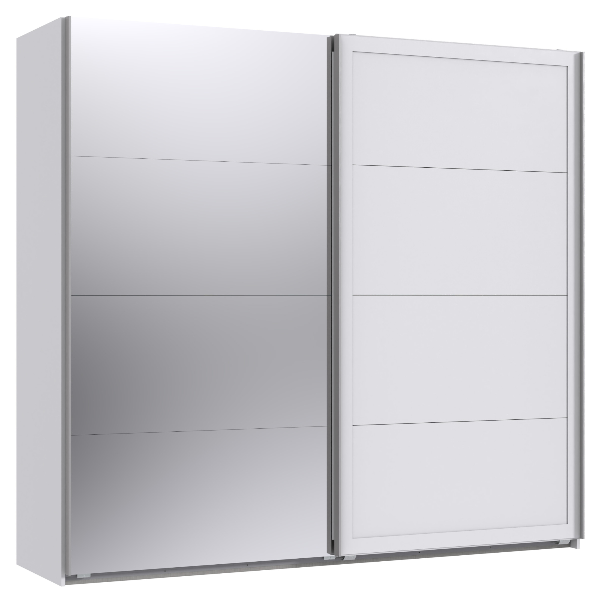 Skriňa je uzatvárateľná pomocou páru posuvných dverí, ktoré šetria cenné miesto zvonku aj vo vnútri skrine. Jedny z dverí sú navyše doplnené o praktické zrkadlo, ktoré vám umožňuje si kedykoľvek upraviť svoj vzhľad. Vnútorné vybavenie skrine pozostáva celkom z 2 vložených políc a 2 šatníkových tyčí. Ponúka tak dostatok miesta na prehľadné uloženie vášho oblečenia a doplnkov. Vyrobená je z materiálu nenáročného na údržbu.