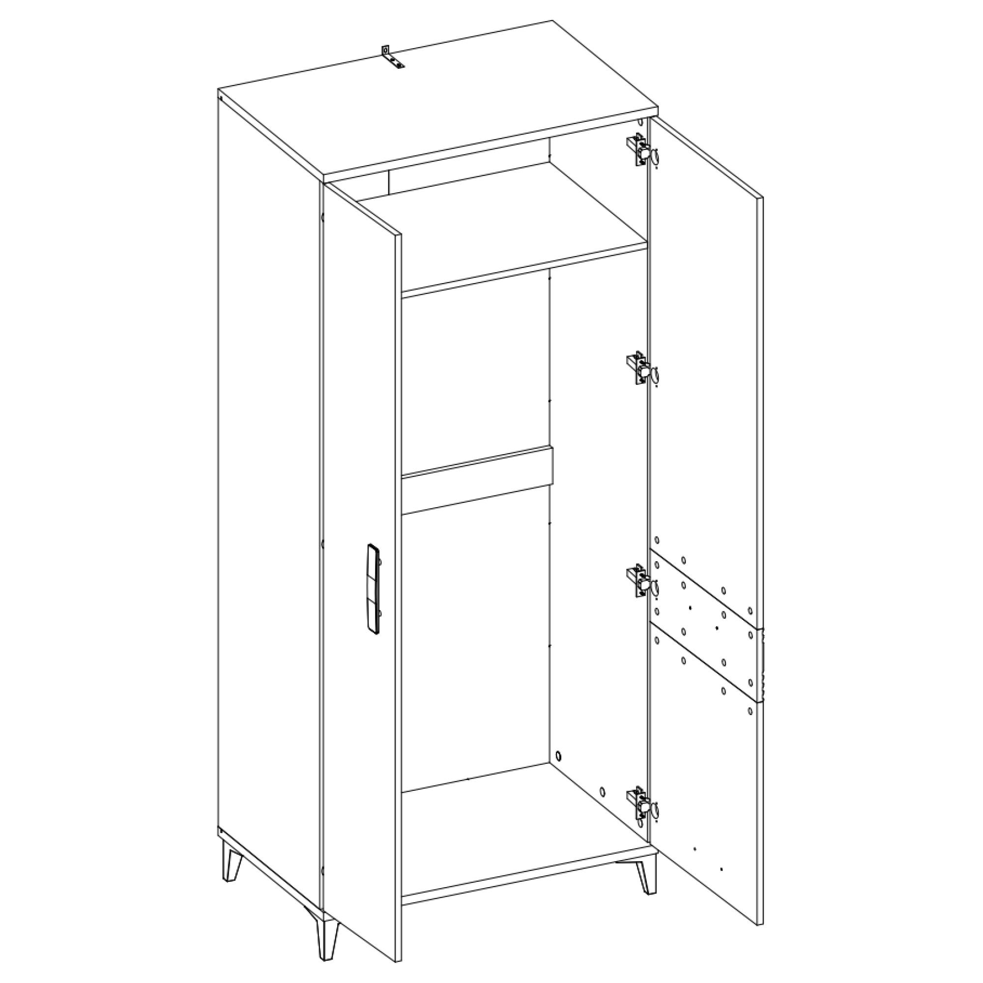 Úložný priestor sa skladá z z hornej police a jednej šatníkovej tyče, takže všetky vaše odevy budete mať vždy pohromade. Manipuláciu dvierok vám navyše uľahčí mechanizmus nerušeného zatvárania SOFT CLOSE. Povrch skrine sa vyznačuje jednoduchou údržbou.