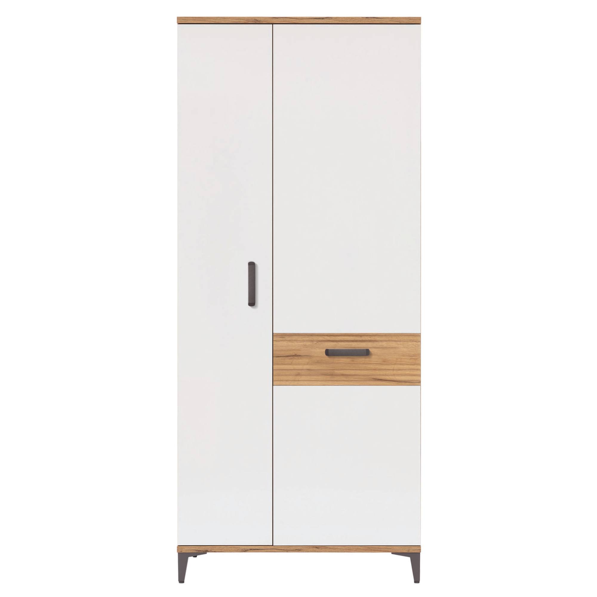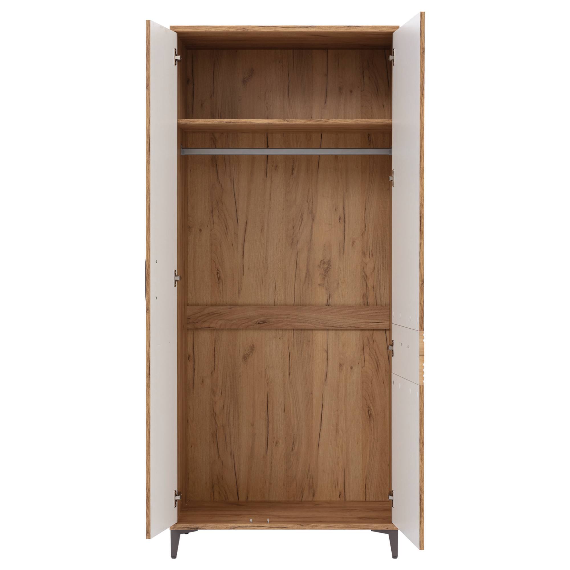 Šatníková skriňa DARCY SB11 v škandinávskom štýle vám poskytne funkčný priestor na uloženie všetkého potrebného, ale zároveň sa stane ozdobou vášho interiéru. Dokonalé spojenie prírodného dekora zlatého remeselného duba a alpskej bielej vytvorí vo vašej spálni či predsieni reprezentatívny vzhľad.