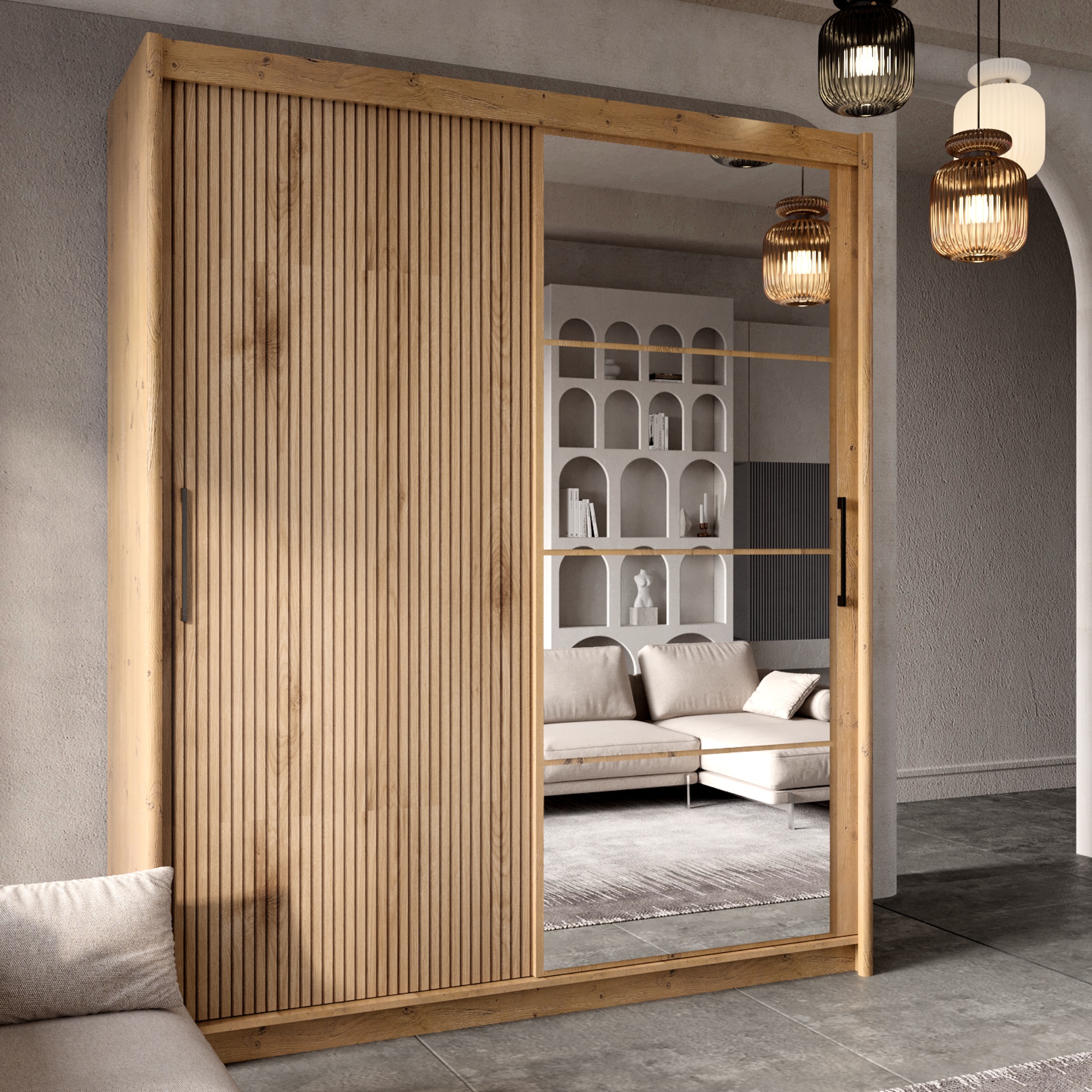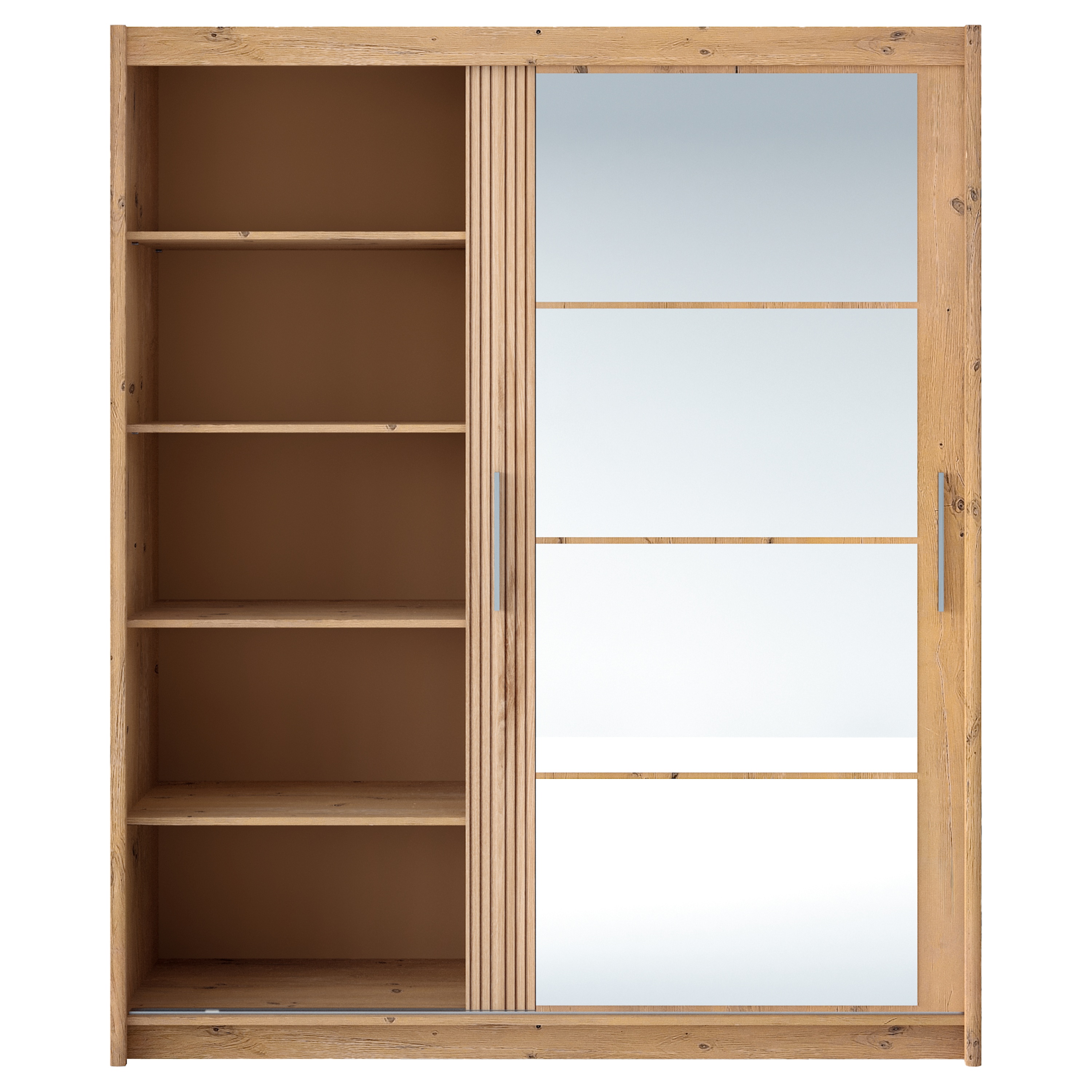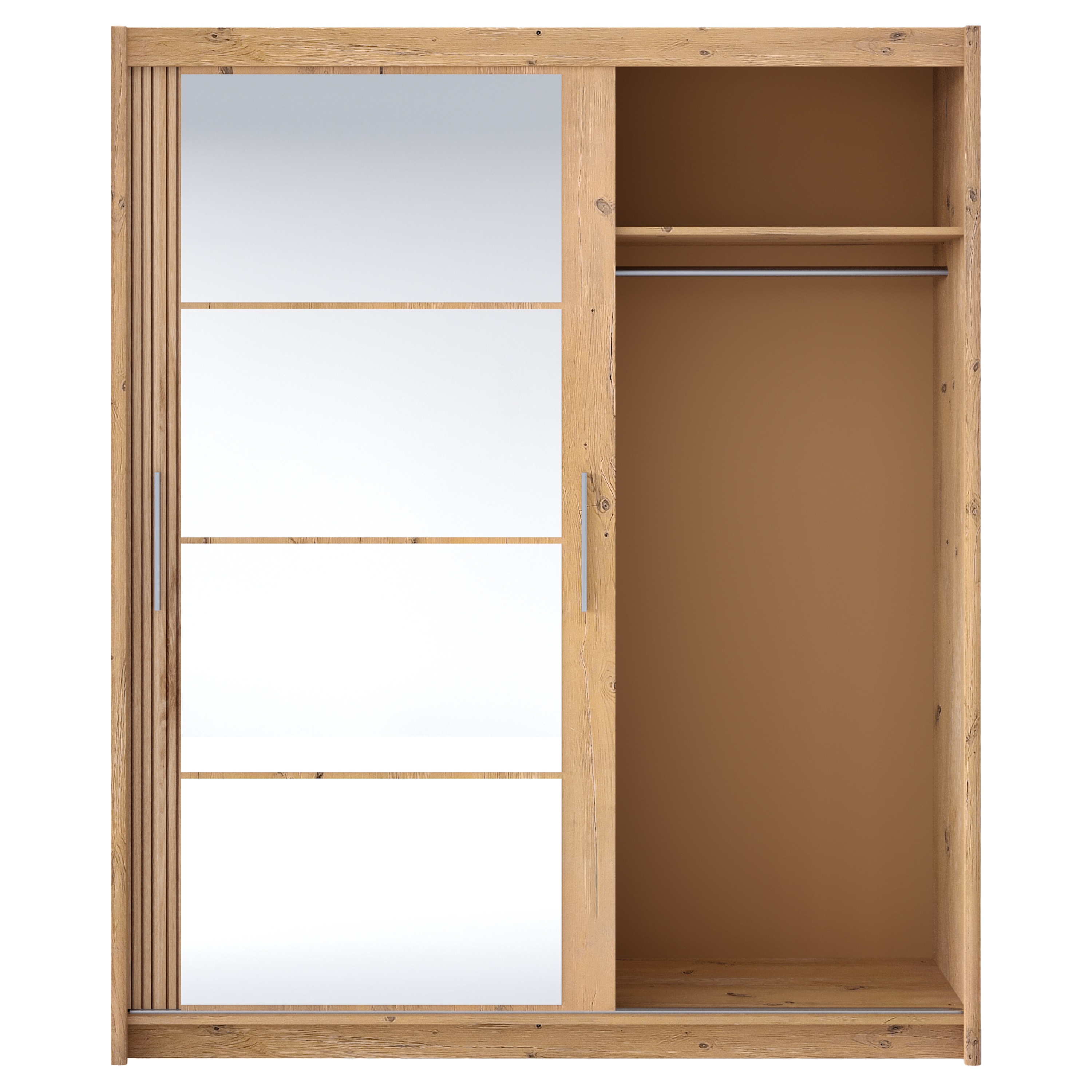 Posuvný systém otvárania dverí šetrí miesto a umožňuje využiť na maximum priestor zvonku aj vo vnútri skrine. Pravé dvere sú doplnené o zrkadlá, ktoré opticky zväčšia a presvetlia aj malé interiéry a zároveň tiež zaistia váš bezchybný vzhľad. Jednoduchú každodennú manipuláciu umožňujú výrazné rúčky.