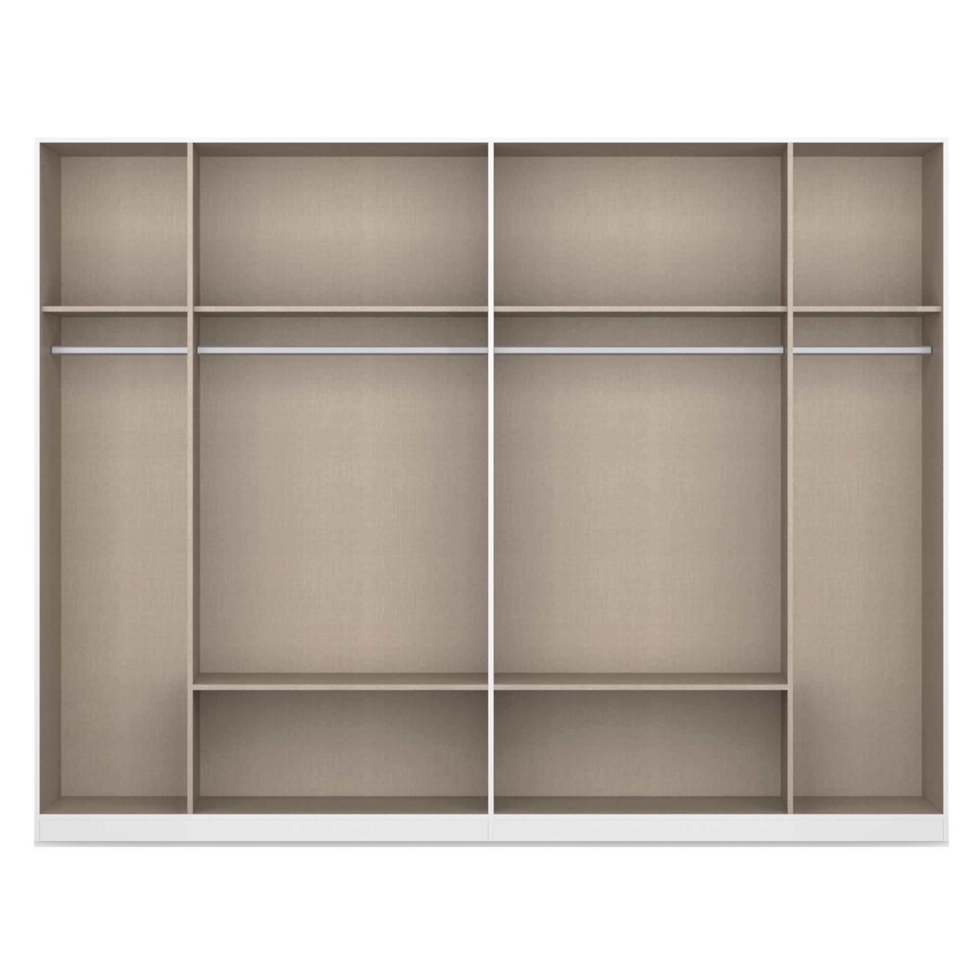 - 4 vložené police, 4 šatníkové tyče