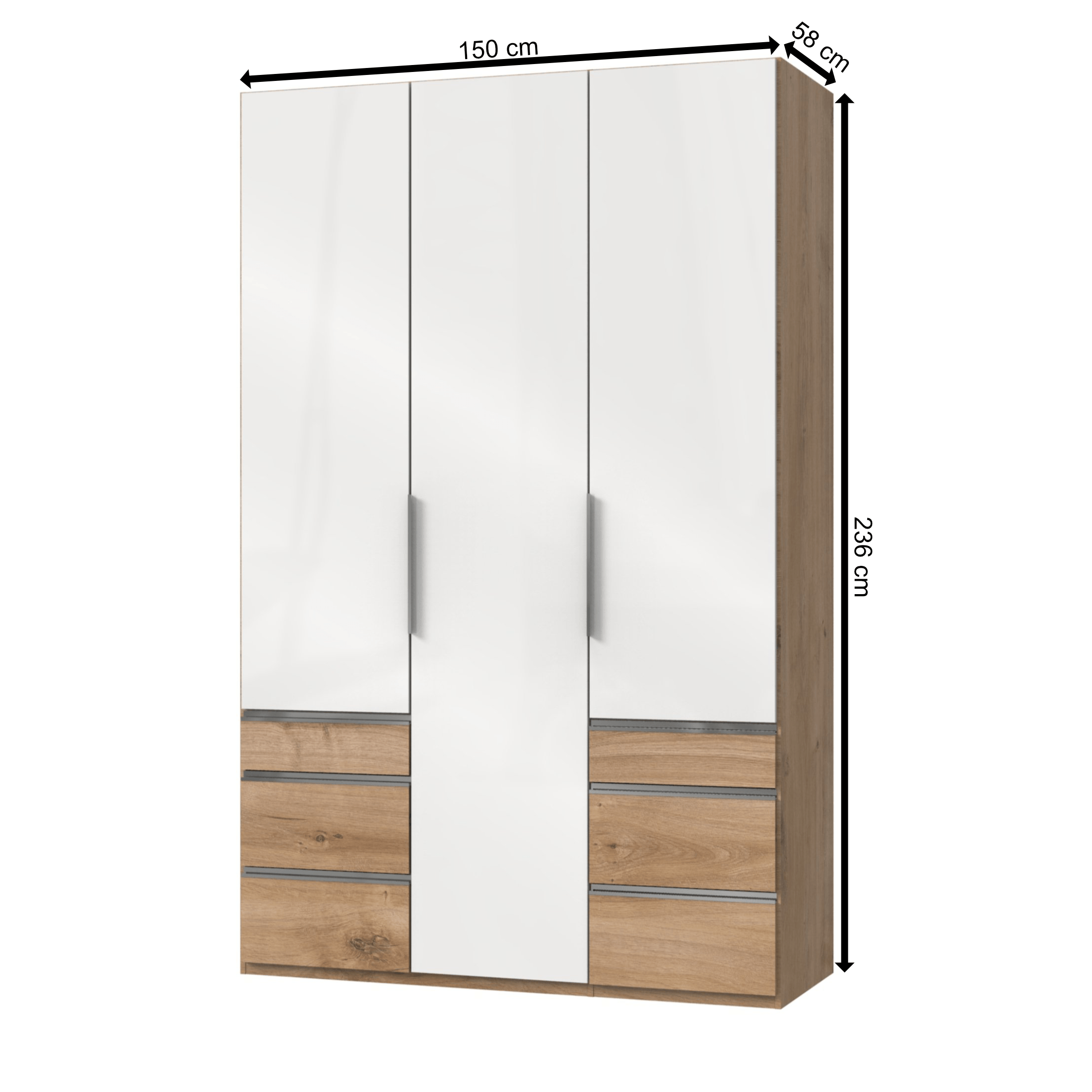 Šatníková skriňa ELIOT - dub doskový/biela lak, 3 dvere