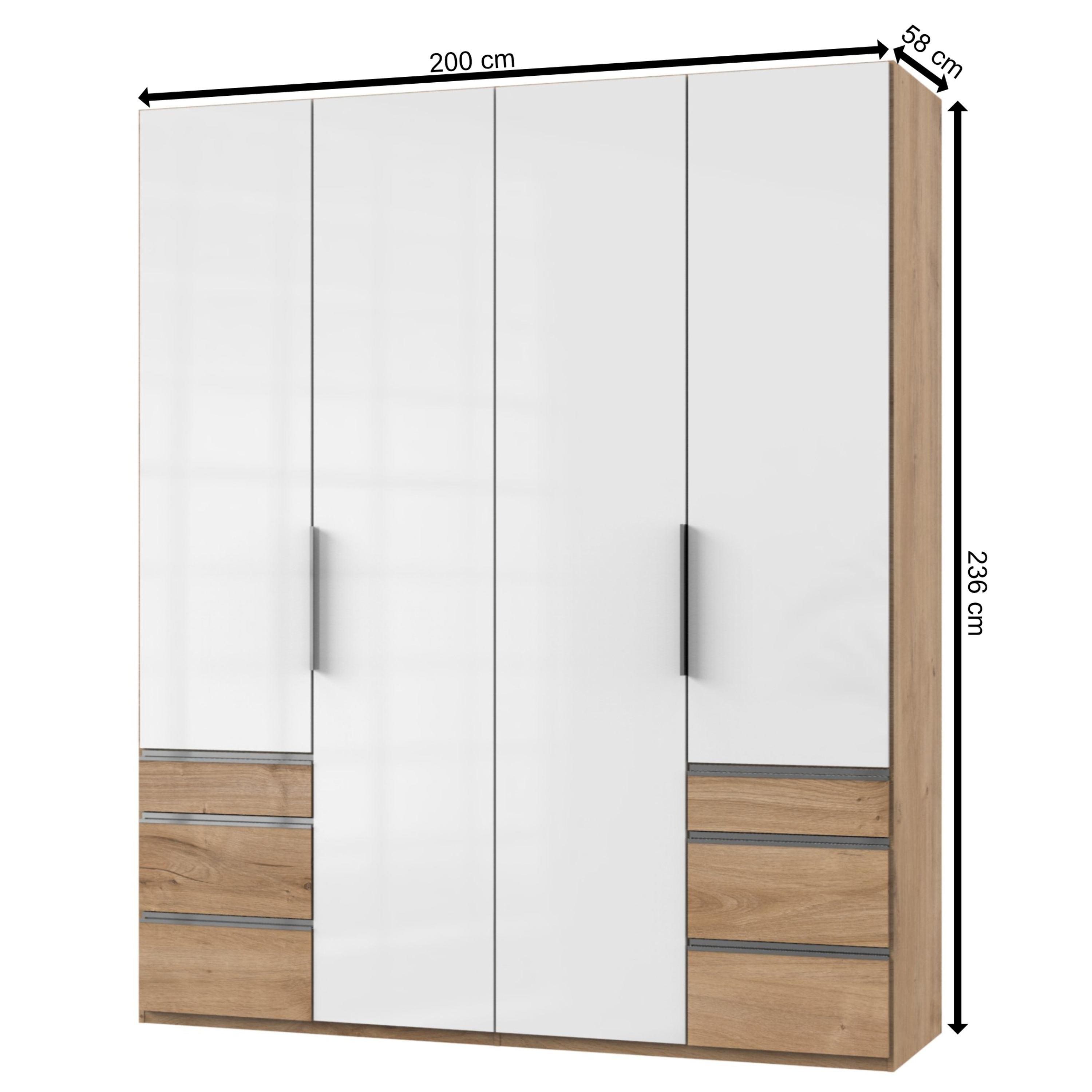 Šatníková skriňa ELIOT - dub doskový/biela lak, 4 dvere
