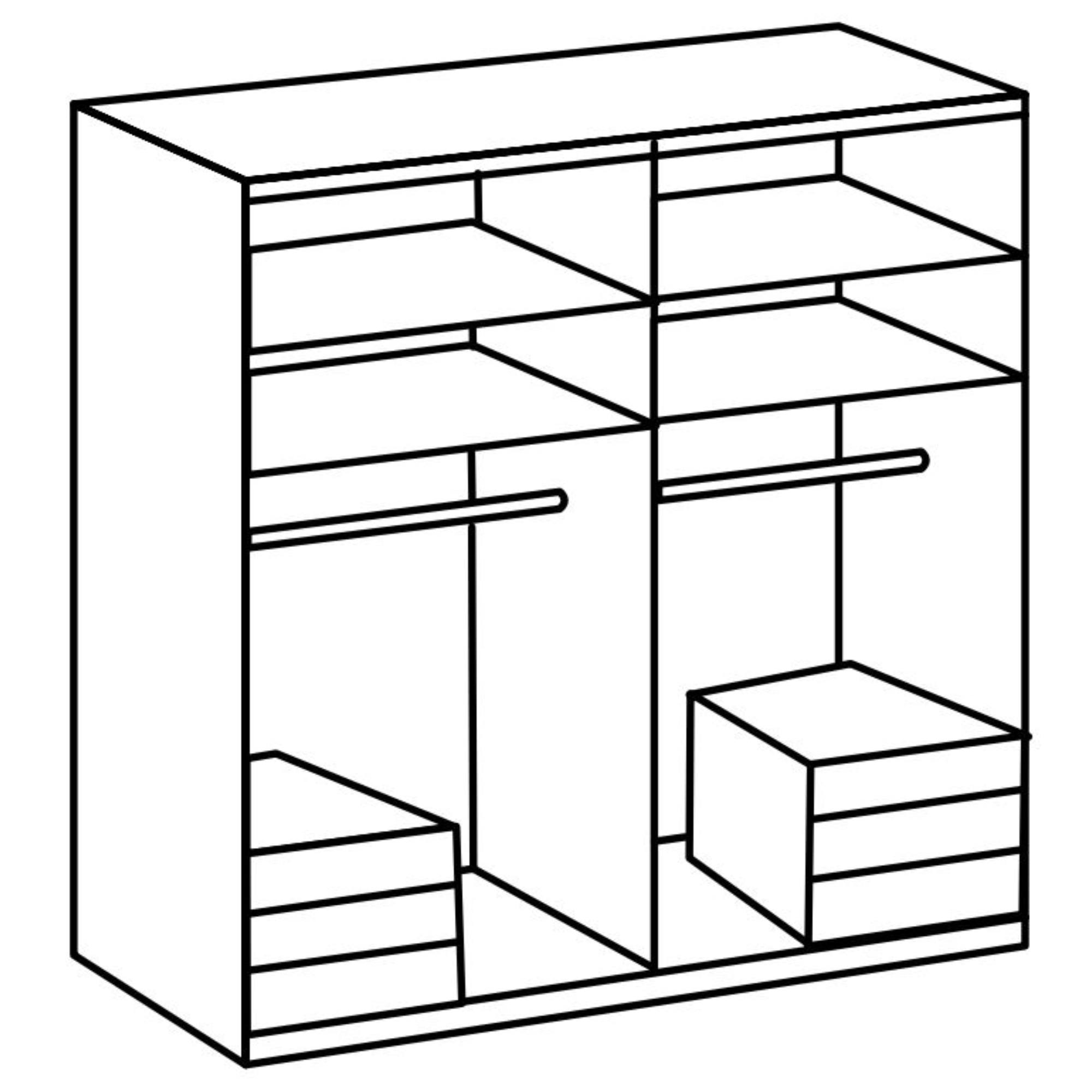 Šatníková skriňa ELIOT pôsobí moderným, ale zároveň prírodným dojmom, a to vďaka kombinácii bielej lesklej farby s dreveným dekorom. Skriňa obsahuje prakticky členené úložné priestory, rozdelené do dvoch blokov. Každý z nich disponuje šatníkovou tyčou a nad nimi sú vložené 2 police. V spodnej časti sú 3 priestranné zásuvky. Otváranie bezrúčkových zásuviek uľahčia pevné kovové výstuhy. Skriňa je vyrobená z ľahko udržiavateľného laminovaného materiálu.