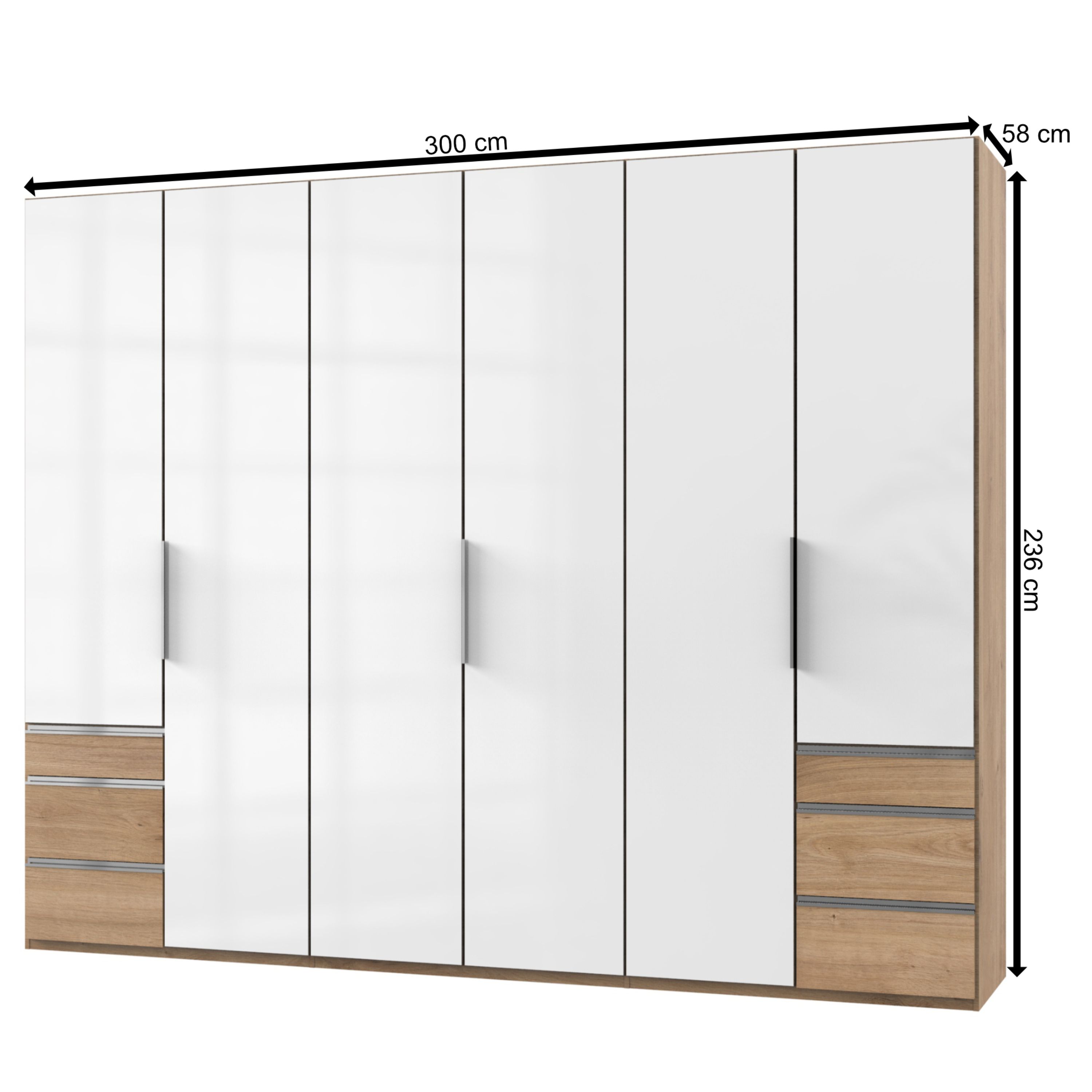 Šatníková skriňa ELIOT - dub doskový/biela lak, 6 dverí