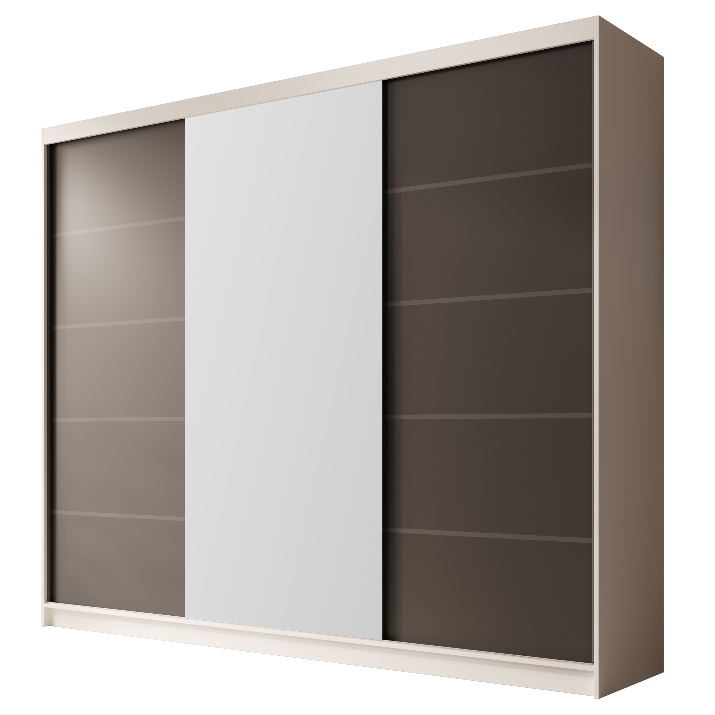 Skriňa je uzatvárateľná praktickými posuvnými dverami, ktoré sa pohybujú po hliníkových koľajniciach zabezpečujúcich plynulý a pohodlný chod dverí. Jedny z dverí sú navyše doplnené o praktické zrkadlo, vďaka ktorému si môžete kedykoľvek skontrolovať svoj vzhľad a ktoré zároveň jemne presvetlí miestnosť.