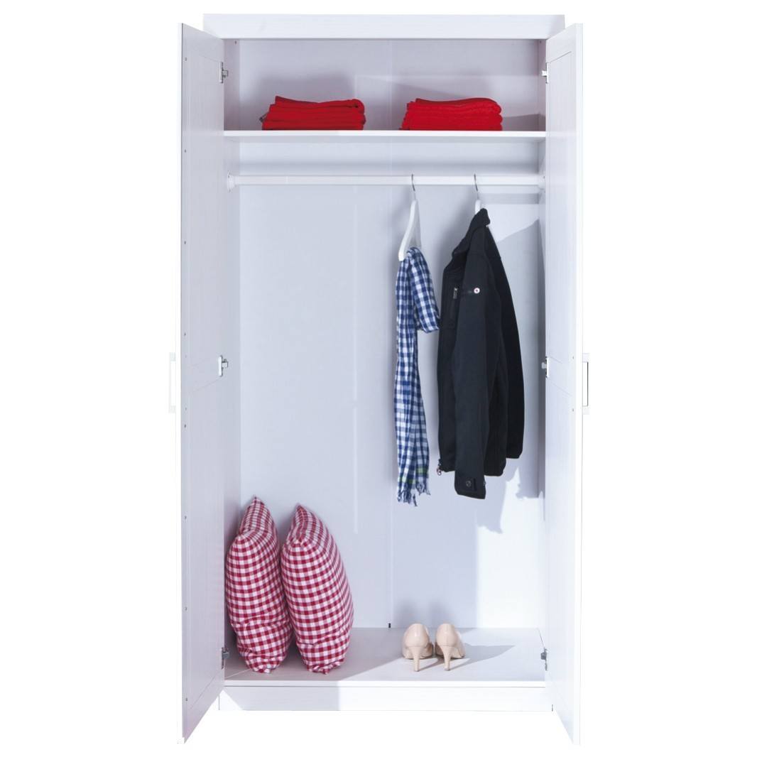 Skriňa má 2 dvere, za ktorými sa nachádza vnútorné vybavenie skrine zložené z 1 vloženej police a 1 šatníkovej tyče. Decentné rúčky uľahčujú otváranie jednotlivých častí skrine. Šatníková skriňa je vyrobená z masívneho borovicového dreva.